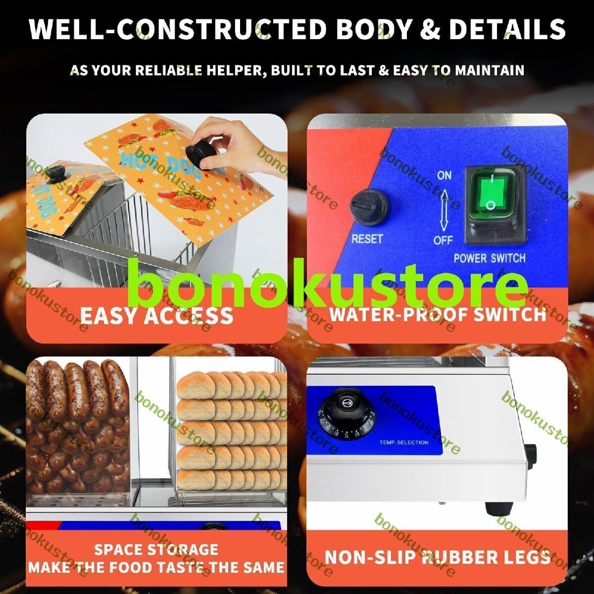 【さまざまな設定に多用途】食堂、ベーカリー、カフェ、ファーストフードレストラン、コンビニエンスストアのいずれを所有していても、当社の業務用ホットドッグスチーマーはあなたの施設に最適です。大容量と優れた保温能力により、ホットドッグやバンズを新鮮でおいしい状態に保ち、いつでも顧客の欲求を満たします。