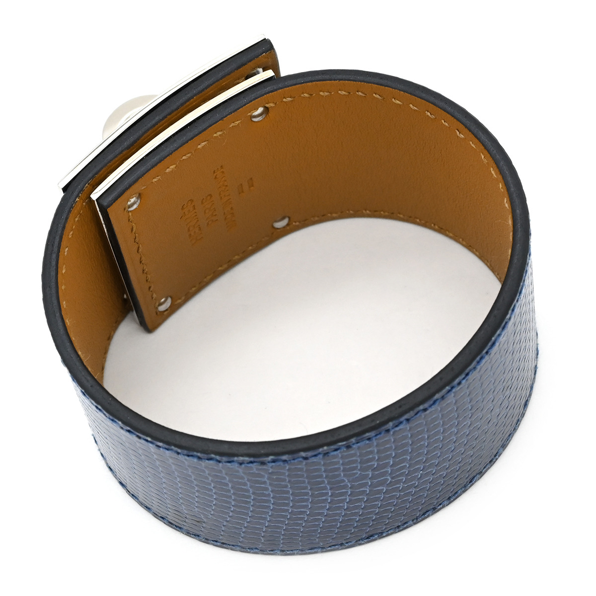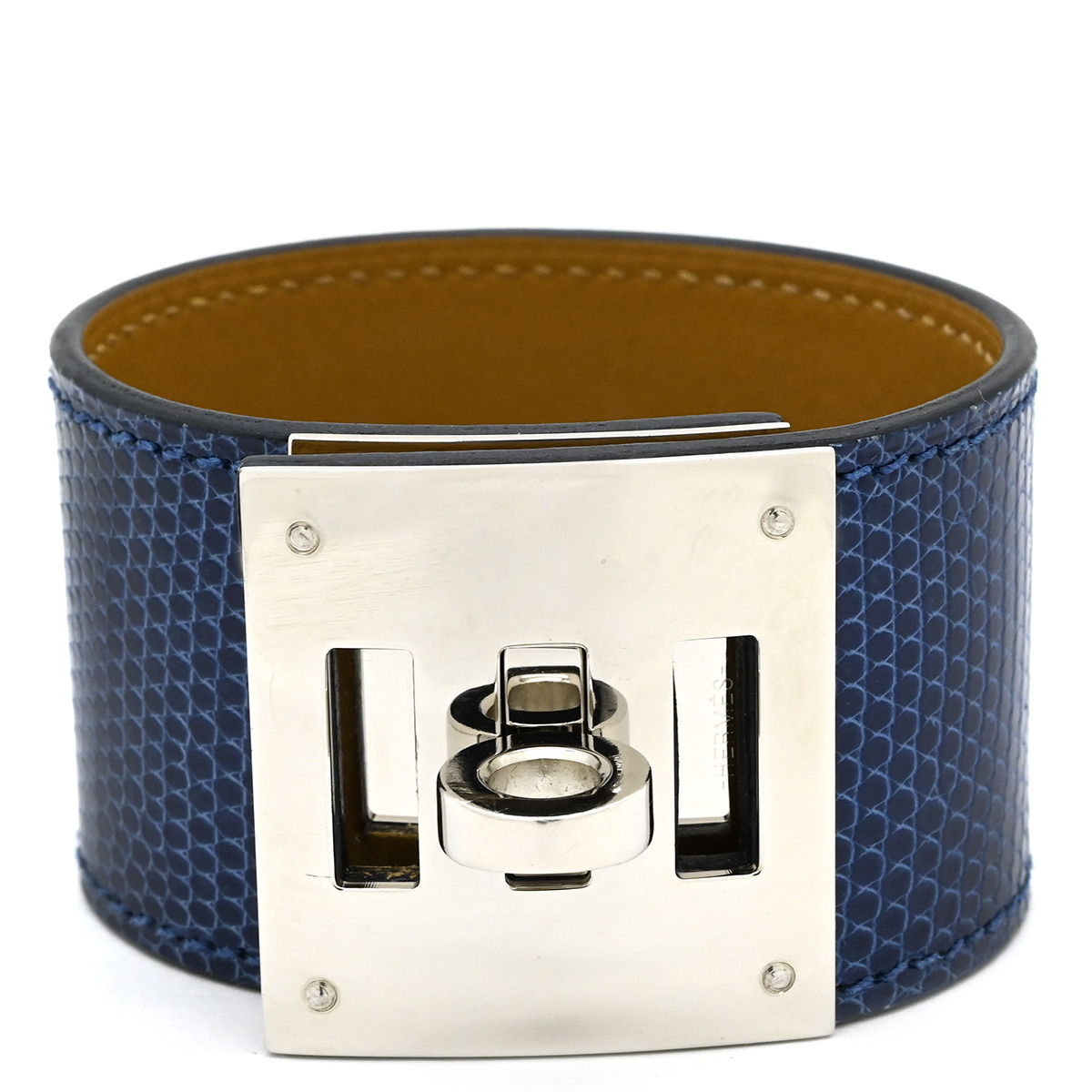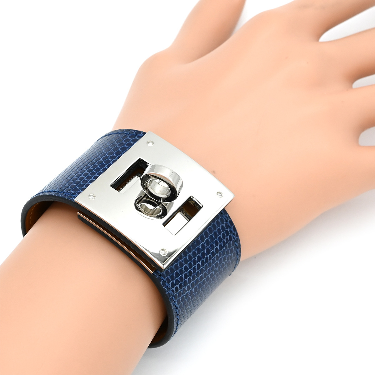 エルメス バングル ケリードッグ リザード ブルー ブレスレット 大型メタルバックル 中古