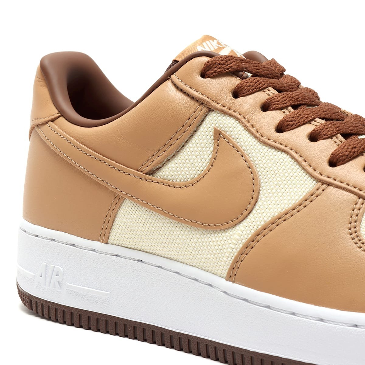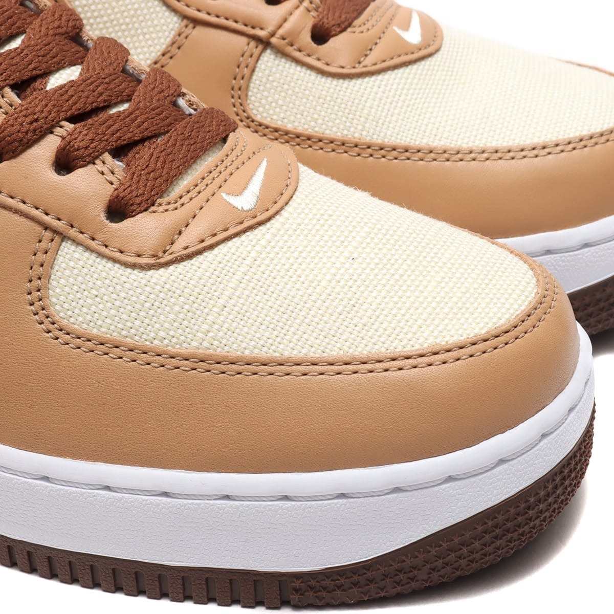 2002年の誕生以来初めて、このレアなエア フォース 1のスタイルが復活する。最新のシューズでは、オリジナルバージョンのオーガニックな色合いとコントラストの効いたカラーブロックデザインを継承。柔らかいレザーのオーバーレイと、アンダーブラッシュ、ライトボーン、エイコーンの鮮やかなシェードカラーが温かみのある雰囲気を強調している。