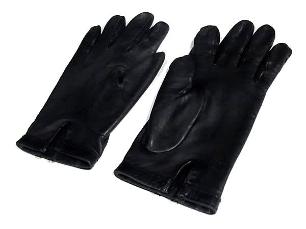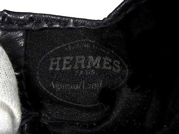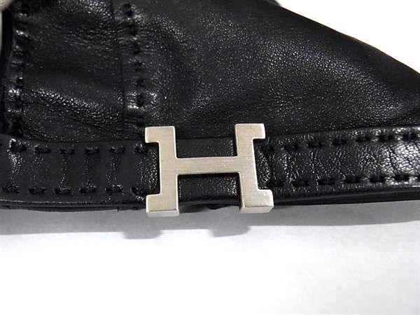 1円 ■美品■ HERMES エルメス ラムスキン シルバー金具 手袋 グローブ 表記サイズ 20.5cm レディース ブラック系 BK8963