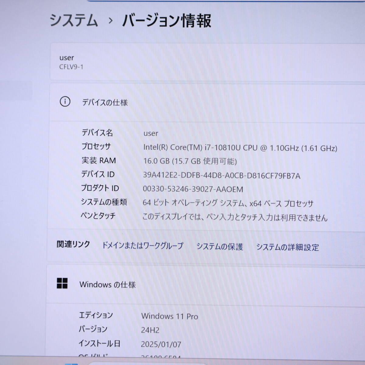 ★超美品 最上級10世代i7!M.2 NVMeSSD512GB メモリ16GB★CF-LV9 Core i7-10810U Webカメラ TypeC LTE Win11 MS Office2019 H&B★P93515