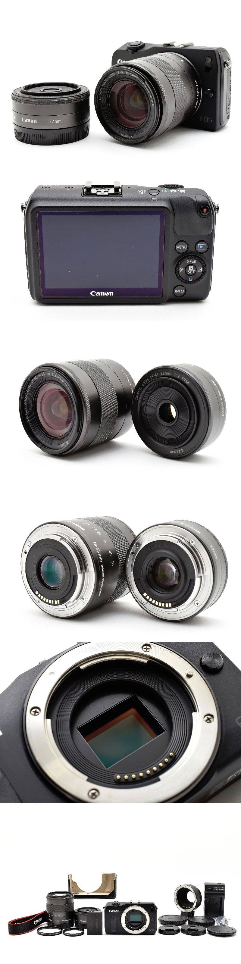 【美品・付属品多数】キヤノン Canon EOS M + 22mm/18-55mm ダブルレンズキット 変換アダプターEF-EOS M 付き #G7202H21065AG0B