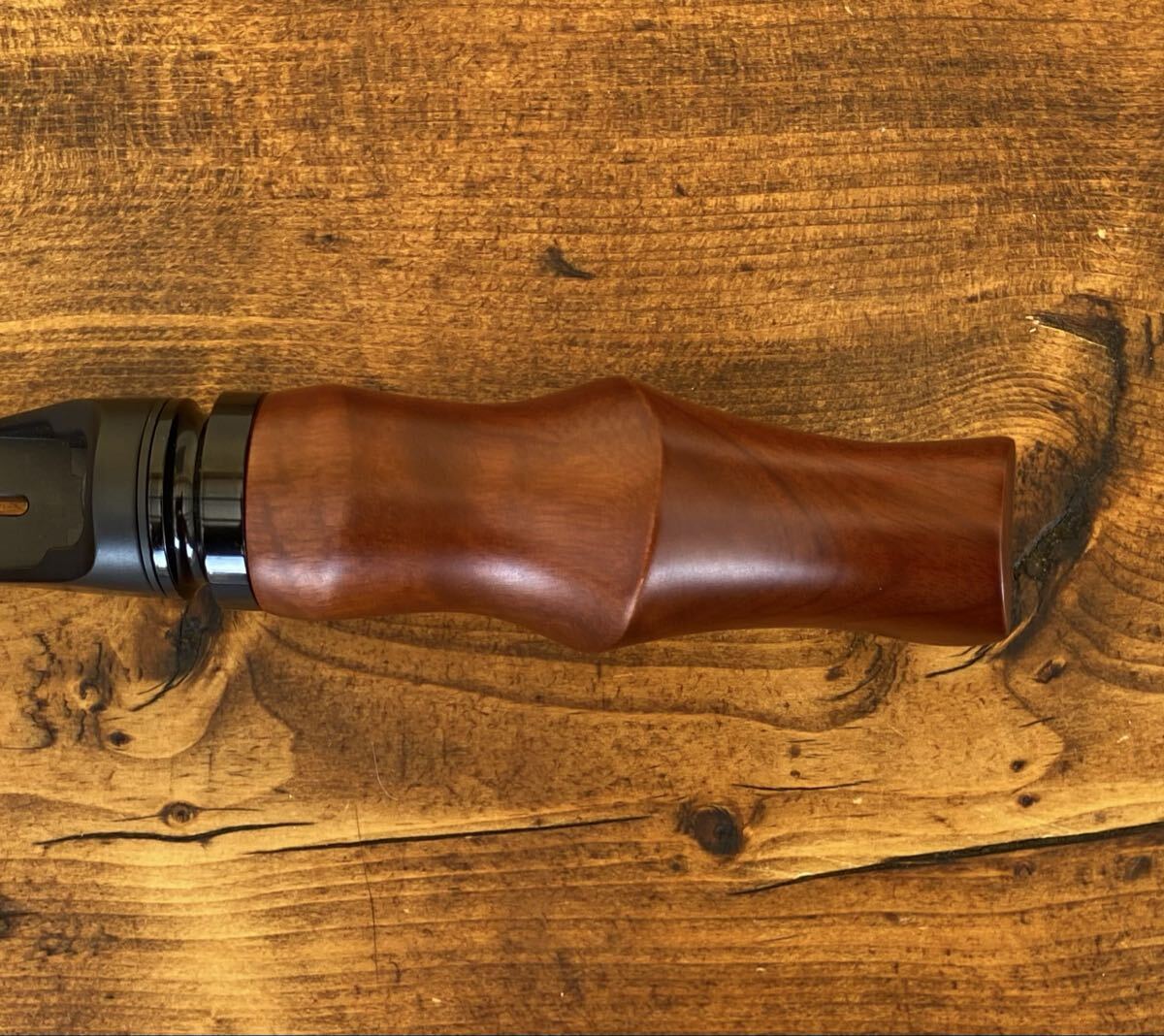 CNC旋盤加工を施したウッドガングリップになります。ロッドビルディングは勿論、手持ちのロッドと組み合わせてみてはいかがでしょうか。グリップ形状は持ちやすく又ウッドグリップなので写真映え間違いなしです!