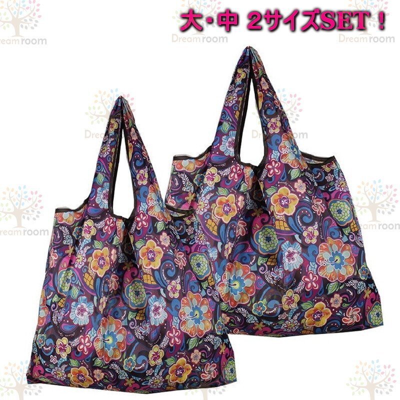 大・中 2サイズset デザイン ショッピングバッグ【F-220-22】 トートバッグ エコバッグ コンビニ袋 折りたたみ