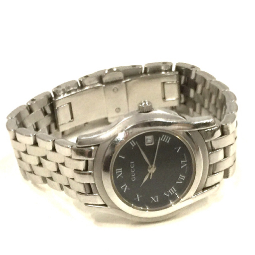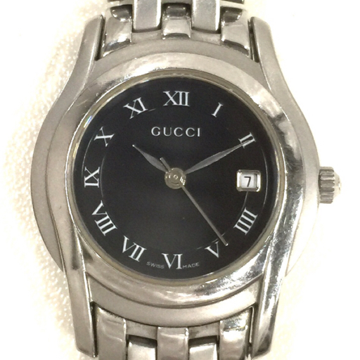 | グッチ 5500L デイト クォーツ レディース 腕時計 ブラック文字盤 純正ベルト ブランドウォッチ 未稼働品 GUCCI |