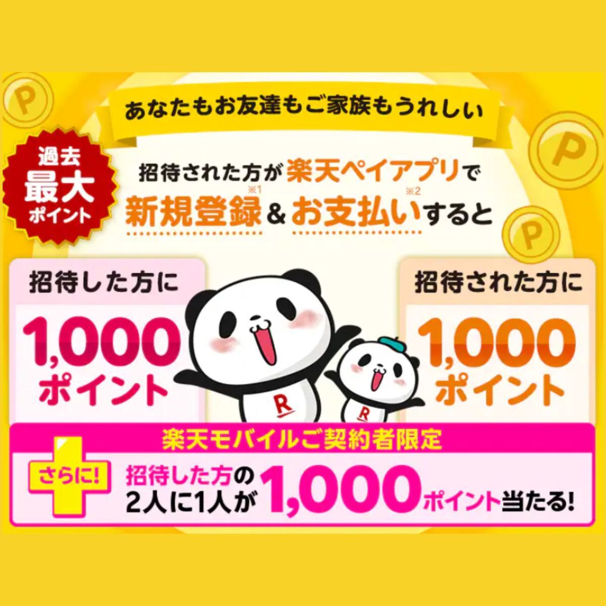 【楽天ペイ】友達紹介URL|新規登録&条件達成で1000ポイント!★即決1円・送料無料★【楽天Pay】