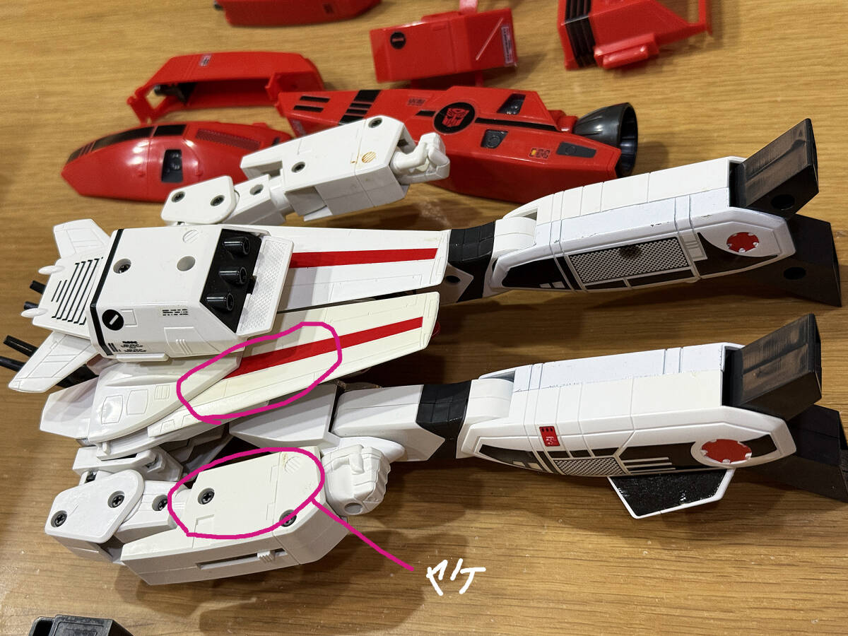 見ての通りタカトクのスーパーバルキリーのリデコ商品です。倒産したタカトクの金型をバンダイが買い取り、海外でジェットファイヤーとして発売されました。