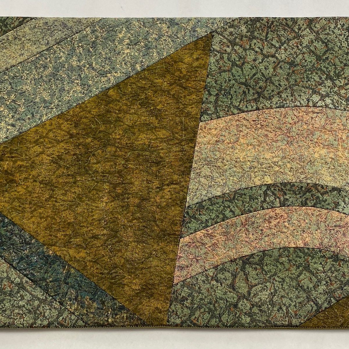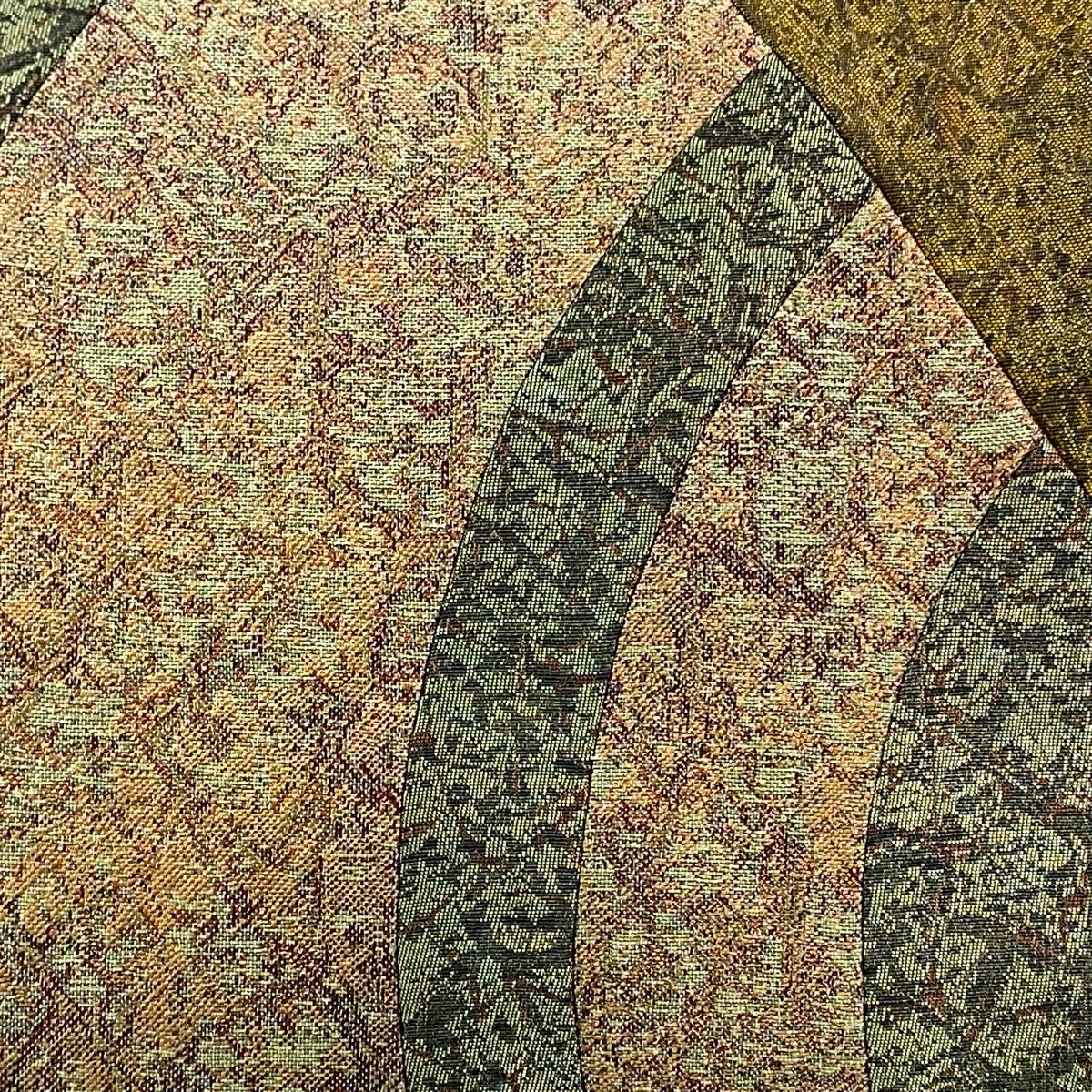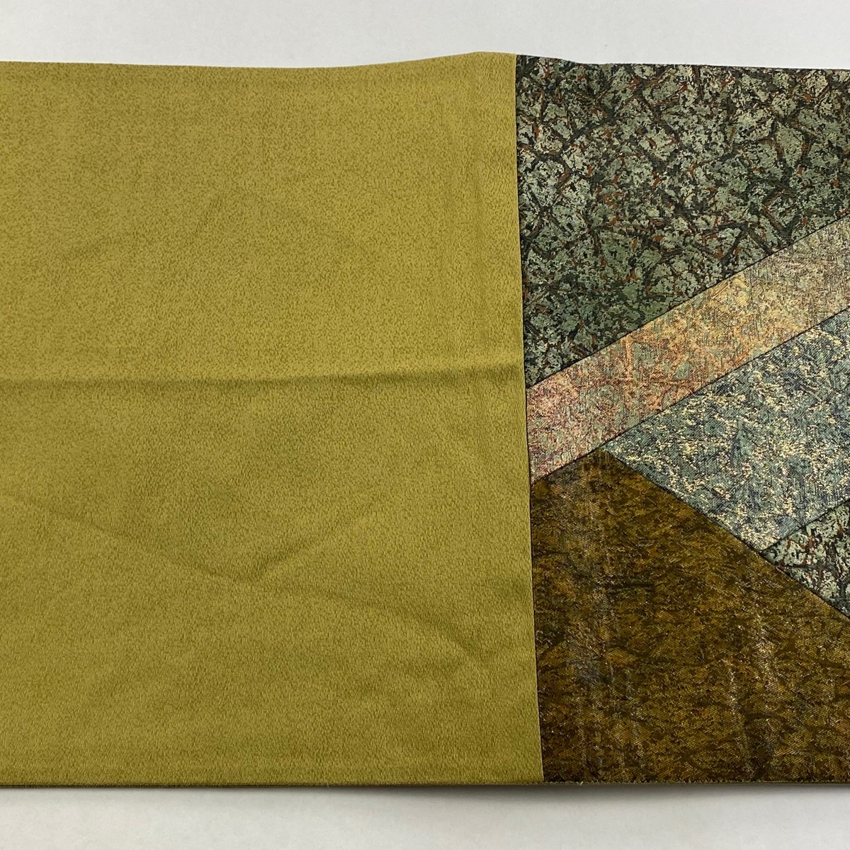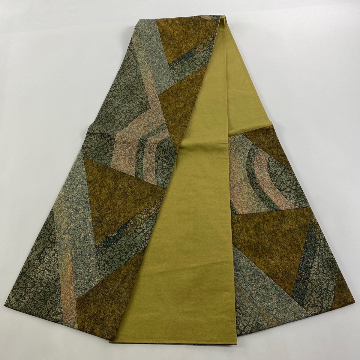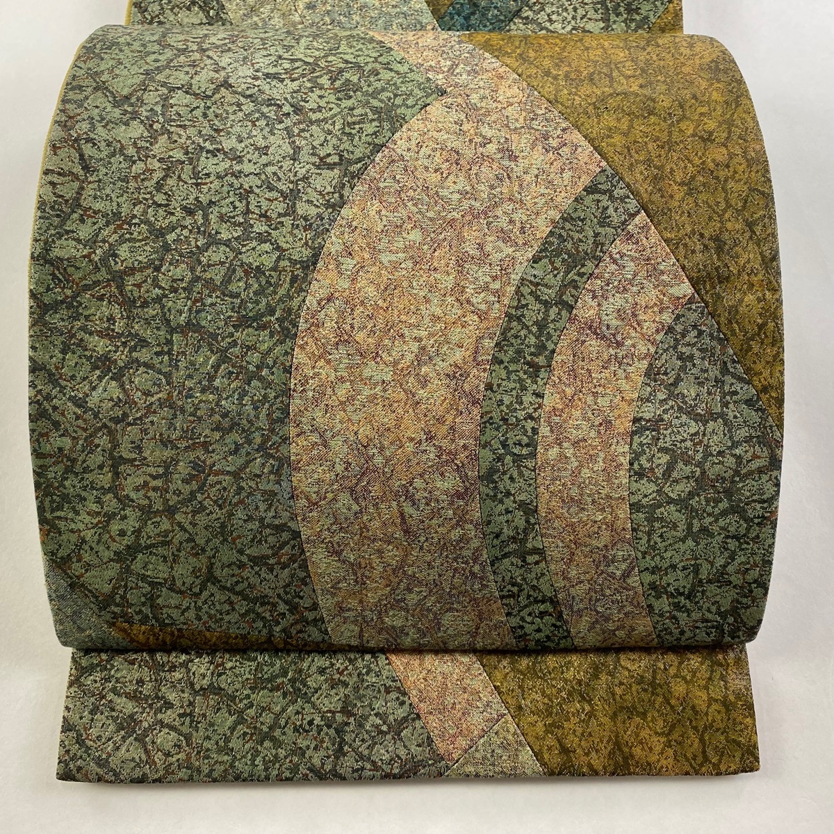 | 袋帯 美品 秀品 葉柄 幾何学 箔 茶緑色 六通 正絹 【中古】 |