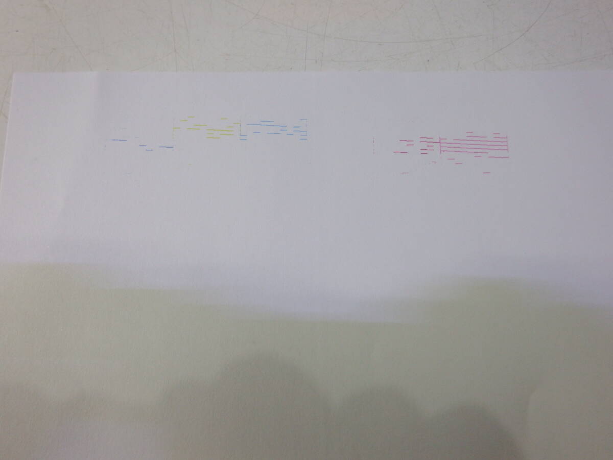 ・ノズルチェックパターンを印刷したところ、画像のようにほとんど色が出ません。(画像参照)