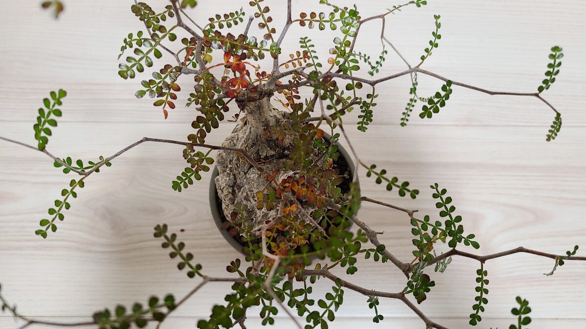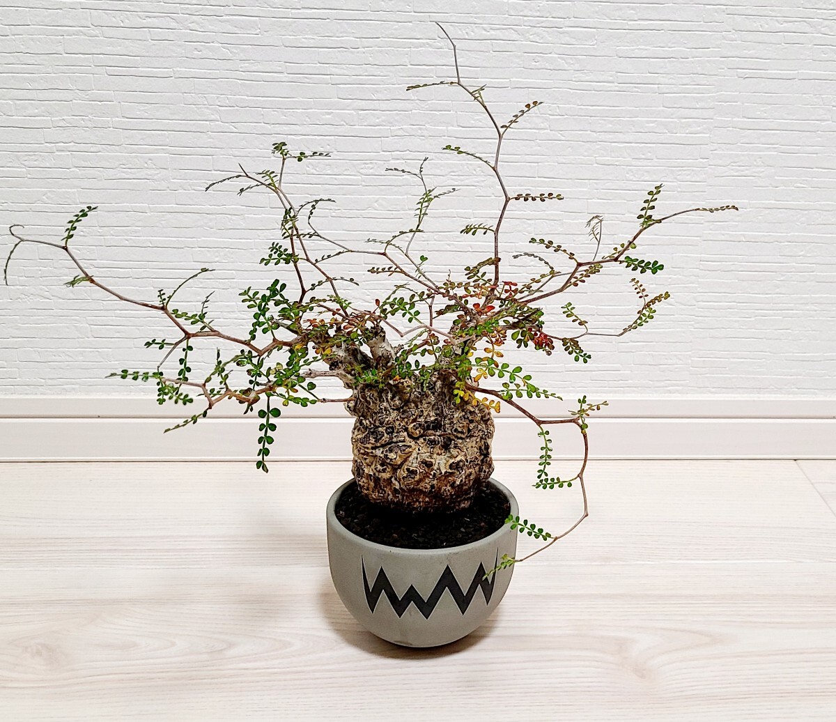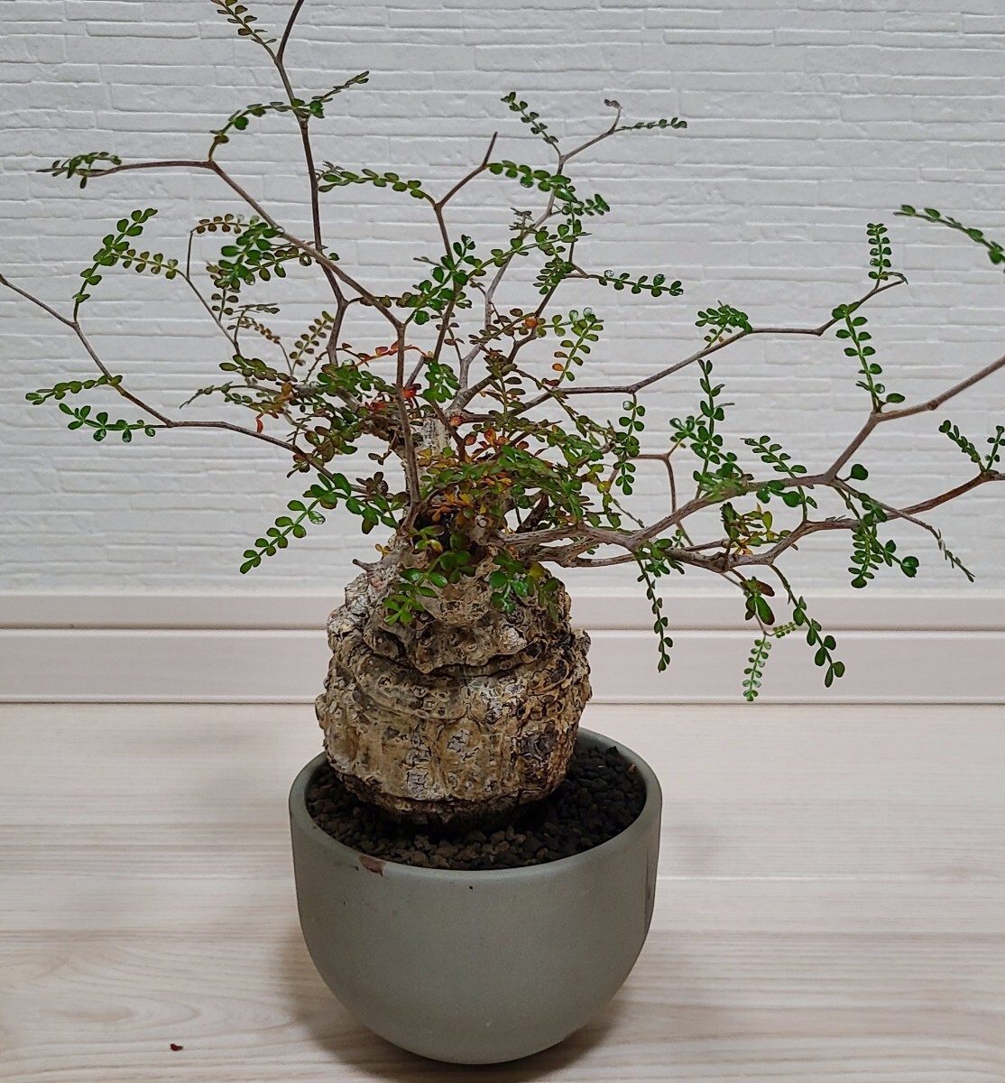 塊根が真ん丸でボコボコ肌、主根も短くミニサイズの激可愛いパキプスです。