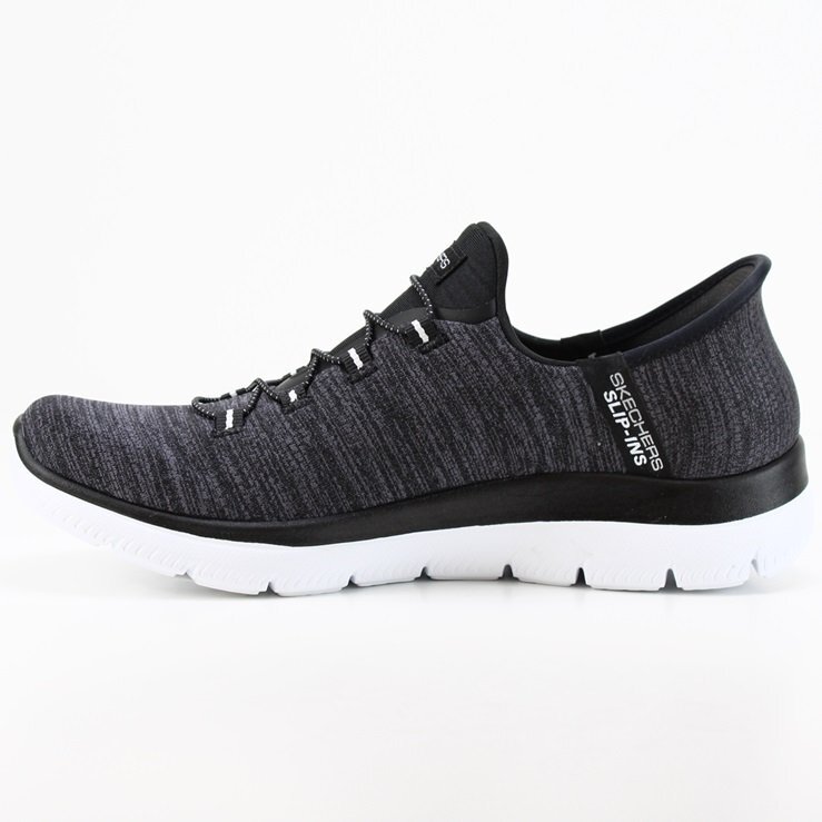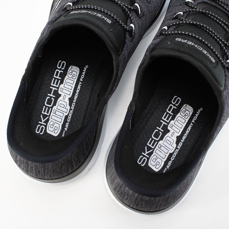 | 立ったままハンズフリーで靴の脱ぎ履きが可能なSLIP-INSモデル。伸縮性のあるストレッチのメッシュ素材をアッパーに採用したバンジーレースタイプシューズ。洗濯機で丸洗い可能。クッション性に優れたSkechers Air-Cooled Memory FoamRインソールを搭載。