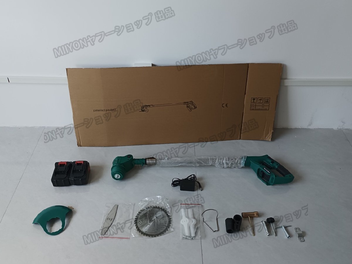 付属品:本体、補助ハンドル、電源アダプター、バッテリー×2、ナイロンブレード×5、スチールブレード×2、六角レンチ、英語取扱説明書*1
