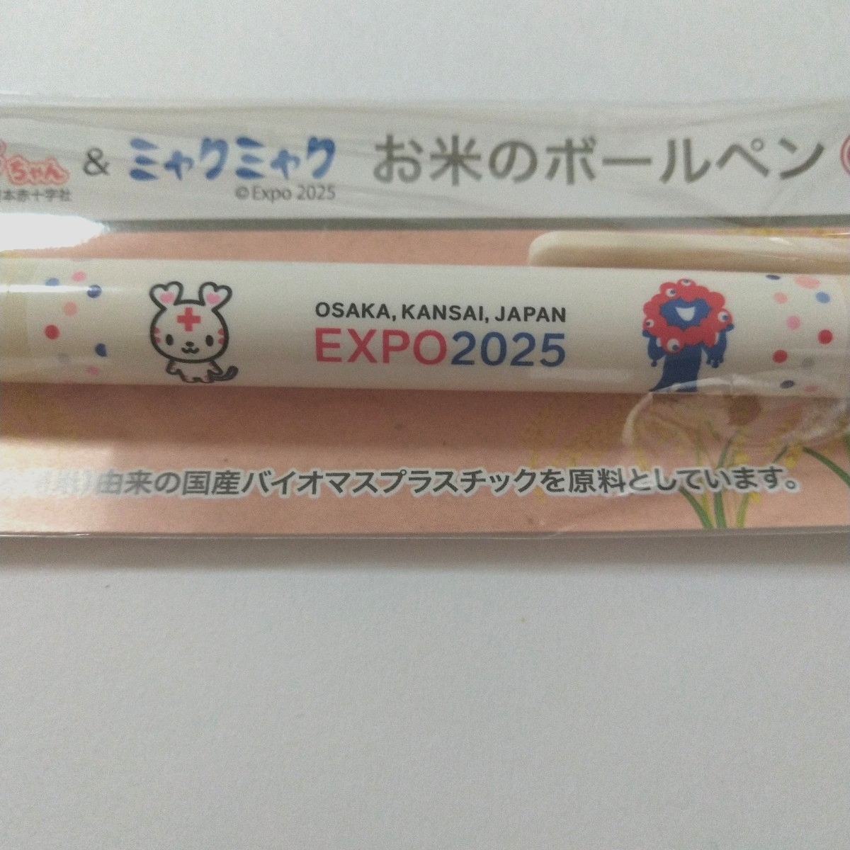 大阪・関西万博公式ライセンス商品、ハートラちゃん&ミャクミャク お米のボールペンです。