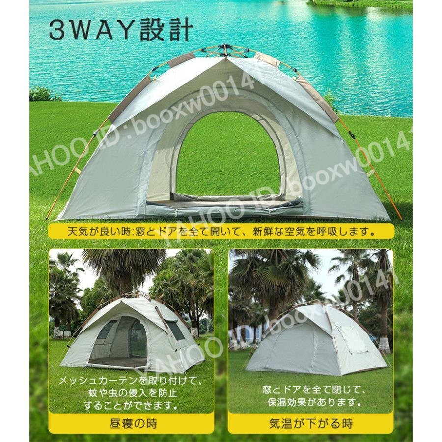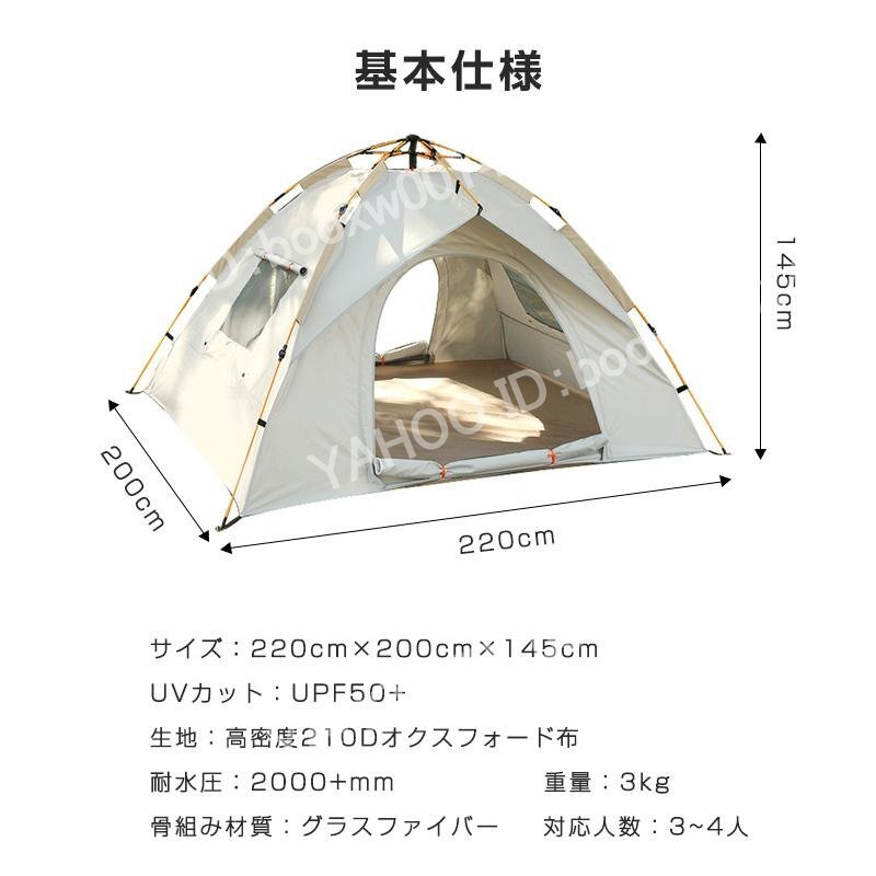 テント ワンタッチテント ドームテント フルクローズ アウトドア キャンプ 軽量 防水 折りたたみ 紫外線カット 組立て簡単 3~4人用