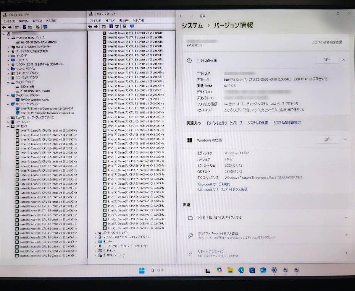 E5-2683 v3 2.0GHz×2 計28コア56スレッド 35MB高速キャッシュ×2 ターボ・ブースト時 最大3.0GHz動作 |