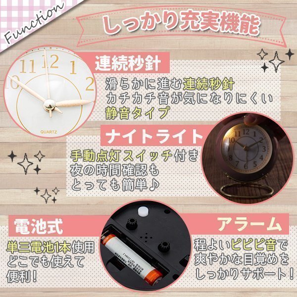 アンティーク 置き時計 ピンク 静音 アラーム ナイトライト アナログ 目覚まし時計 時計 ライト 目覚まし レトロ インテリア 北欧 韓国