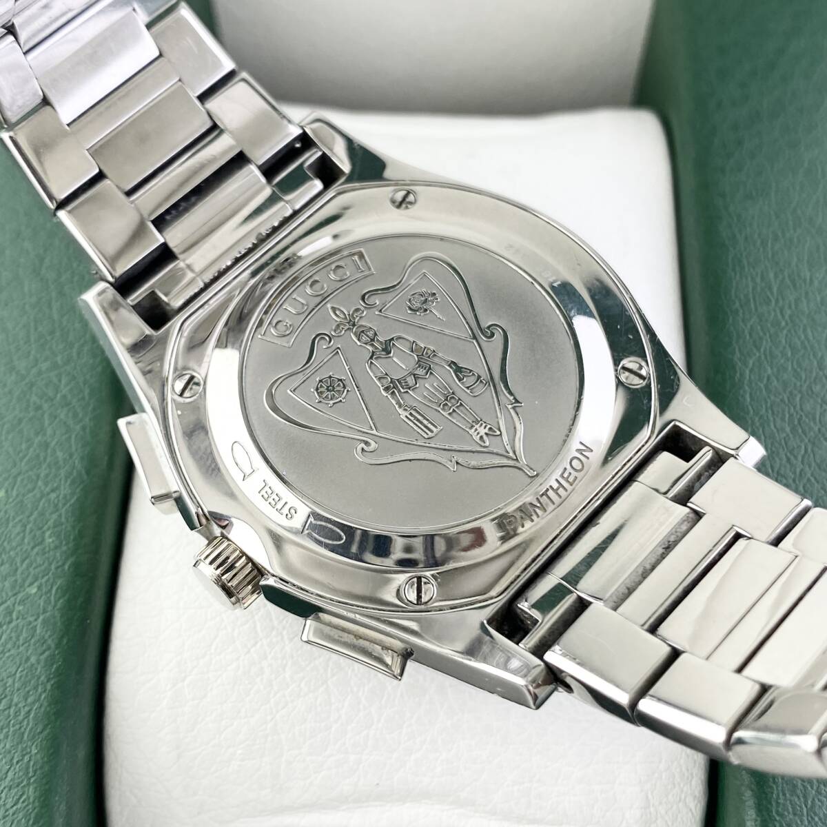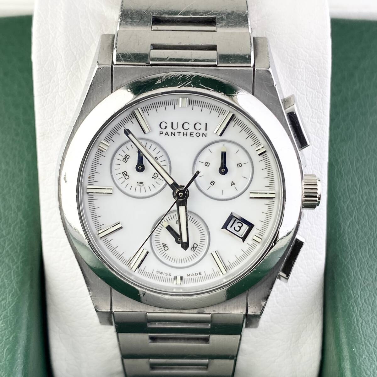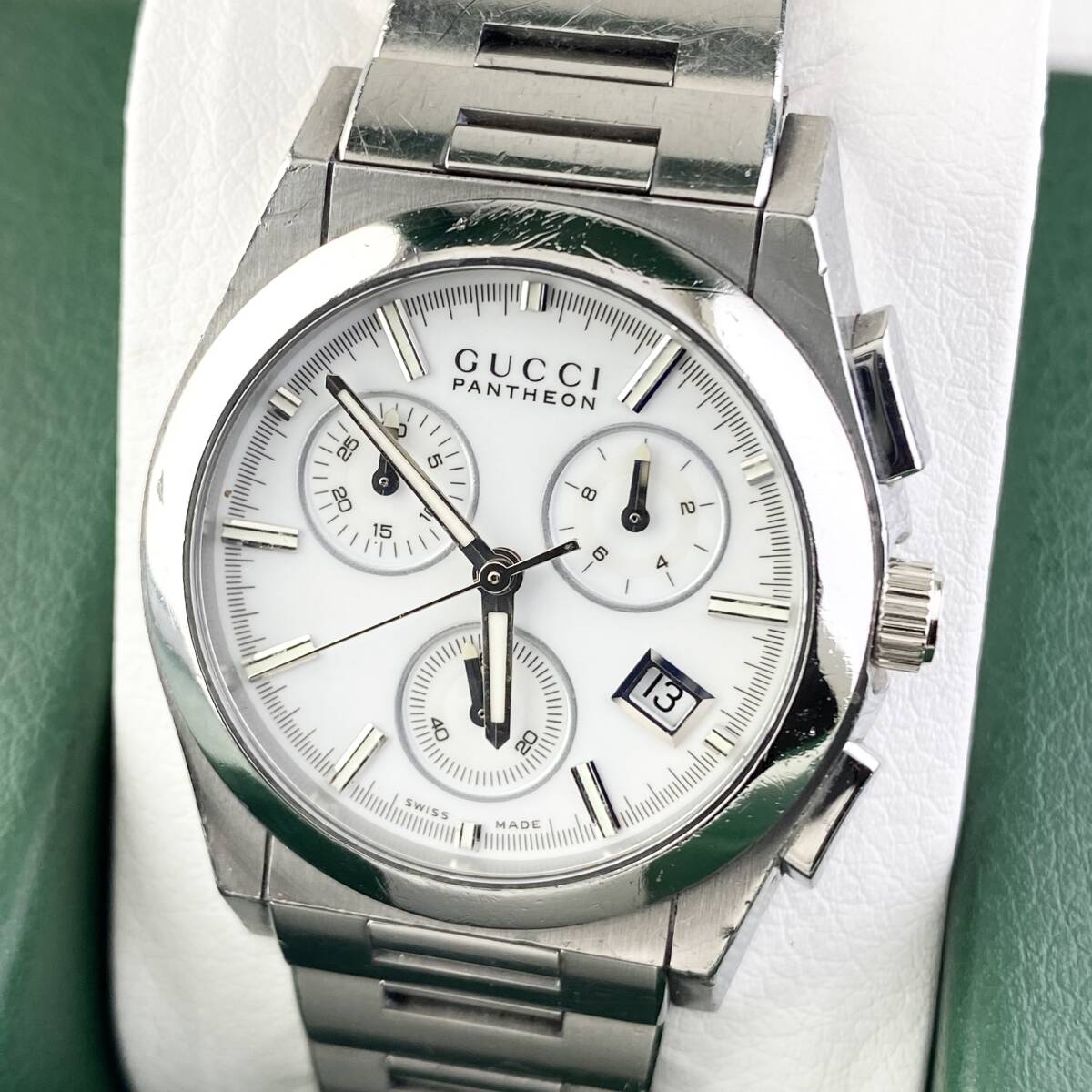 【1円〜】GUCCI グッチ 腕時計 メンズ クロノグラフ PANTHEON パンテオン 115.4 ホワイト文字盤 ラウンドフェイス デイト 可動品 | |||