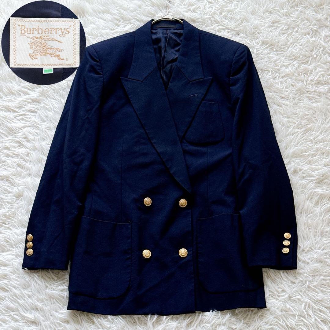 Burberrys バーバリーズ Burberry バーバリー ジャケット 金ボタン ダブルブレスト ネイビー 紺 テーラード ヴィンテージ レディース 9 Mサイズ トラッド フォーマル 通勤 スーツ 上品 クラシック 英国製 トレンチチェック 裏地付き きれいめ 大人スタイル 春秋 冬 美品 正規品 高級 ブランド