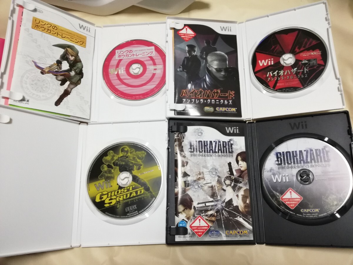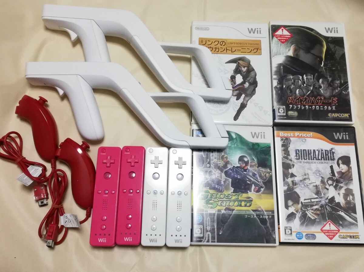 ■即決■Wiiザッパー2個、対応ソフト4本、Wiiリモコン4個、ヌンチャク2個セットまとめて ※未チェック現状品■