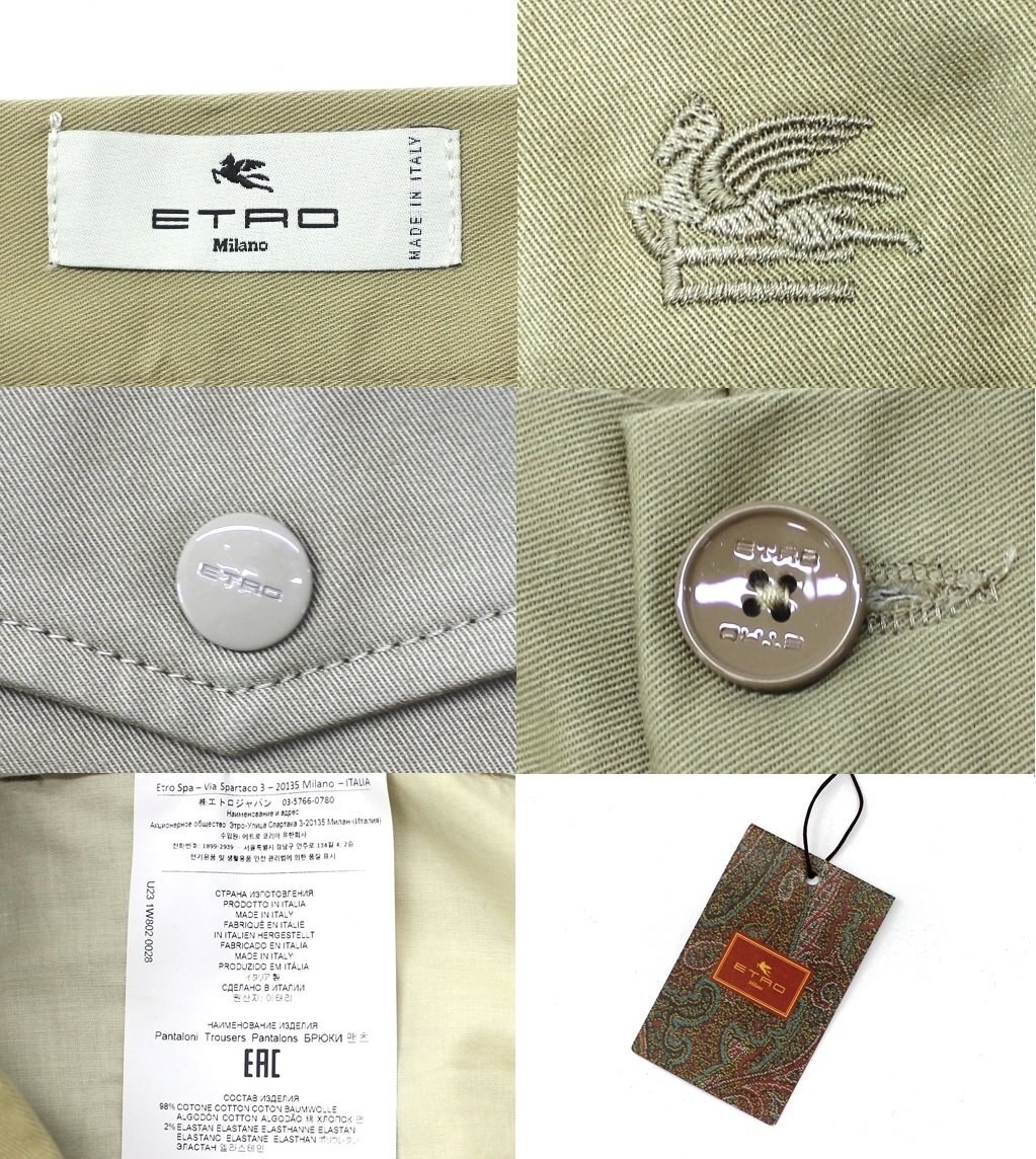 18万新品◆52=XL◆エトロ◆【ETRO】PEGASO刺繍ロゴ コットンストレッチ バックスナップポケット トラウザーチノパンツ ベージュ薄茶