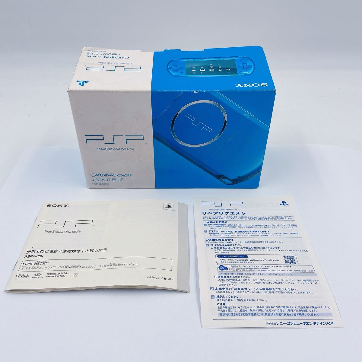 10E045 SONY ソニー PSP ゲーム機 本体 PSP-3000VB ゲーム ホビー バイブラントブルー ジャンク品 元箱付 取説付 ソフト付