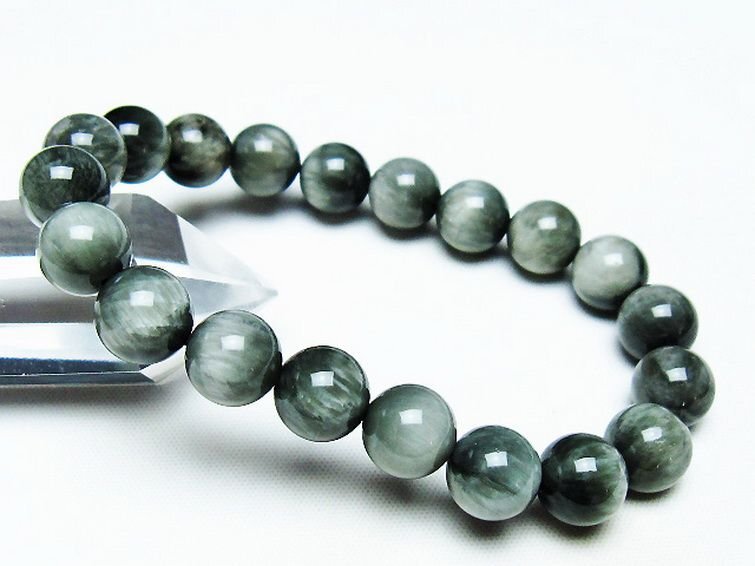 | ■商品名: イーグルアイブレスレット ■商品ID: T156-6718 ■商品重量:約 28g ■商品サイズ:内周約:165mm(±5mm)粒直径約:10mm(±0.5mm) 【イーグルアイ(鷲目石)】 イーグルアイは和名では鷲目石(わしめいし)といいます。「クロシドライト」という鉱物と石英で構成され、大きい括りでは水晶のグループに属しています。 イーグルアイは古来より神の目と信じられ、「すべてを見通し、災いを祓い幸運をもたらす石」として儀式やお守りなどに用いられてきました。 古代のエジプトやチベットでは神仏の像の目にイーグルアイをはめ込んだり、ローマ人は霊力を高めるお守りとして珍重していたそうです。 勝負運・仕事運を高めて幸運を引き寄せる強力なパワーを持つとされ、仕事でチャンスをつかみたいという方、スポーツや学業で大きなイベントを控えている方にはお守りとして身につけることで心強いサポートが得られるでしょう。 またホルモンバランスの乱れや体の不調を整える身体的な効果も期待され、特に眼精疲労の癒しや視力回復などの目に関わる部分にも良いとされています。 ⇒ イーグルアイをもっと詳しく ◆ワンポイント情報 タイガーアイに似ているためイーグルアイは「グレータイガーアイ」の別称もありますが、タイガーアイとイーグルアイは鉱物としては別の物になります。 |