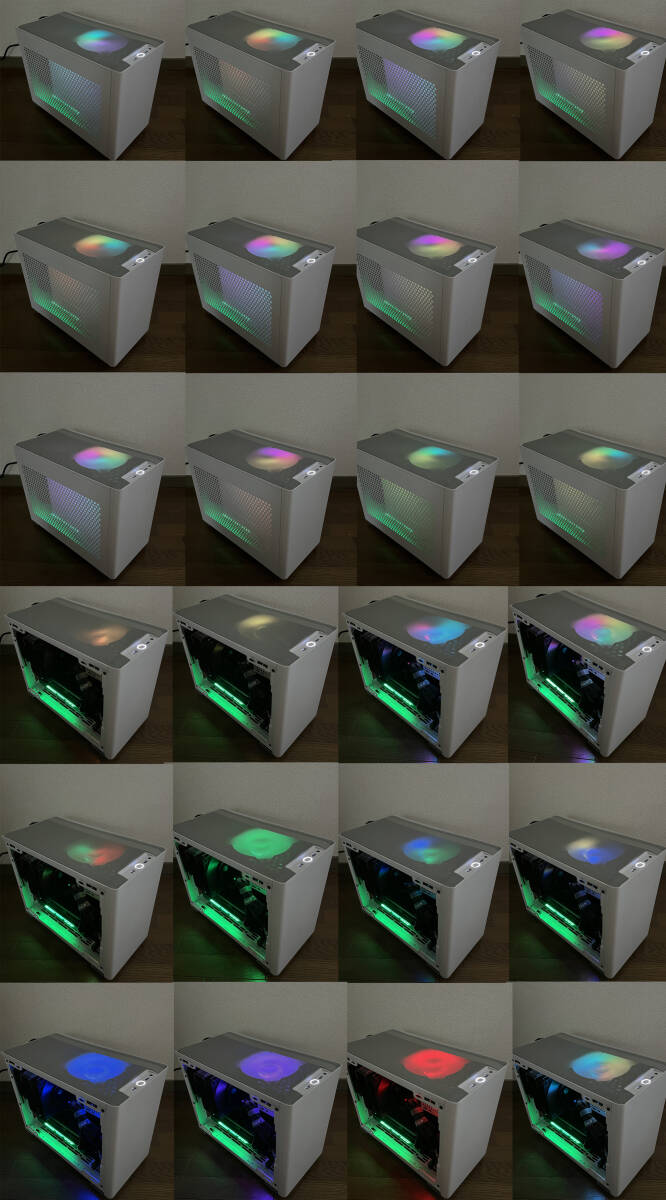 当方喫煙無しペット無し、使用もほとんどしておりませんでしたので汚れもございません。天面にレアな薄型RGBファンを追加しゲーミング感を多少演出しておりますが、発光もうるさくない程度に留めております(ケース内部に仕込まれたIN WIN製スイッチで豊富かつかなり特殊な美麗発光を切り替えできます)。