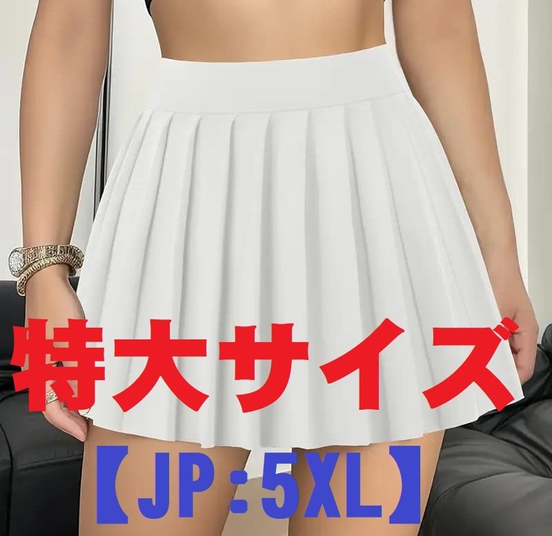 ★特大★ 厚手 アイボリー プリーツスカート(スコート) XXL(JP:5XL) W86cm± [テニス/ランニング/スポーツ/大きい]