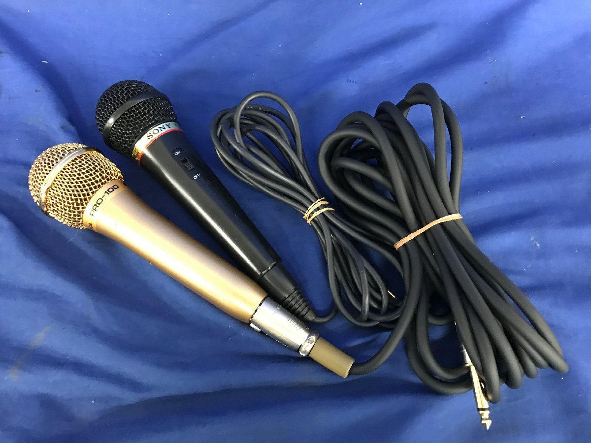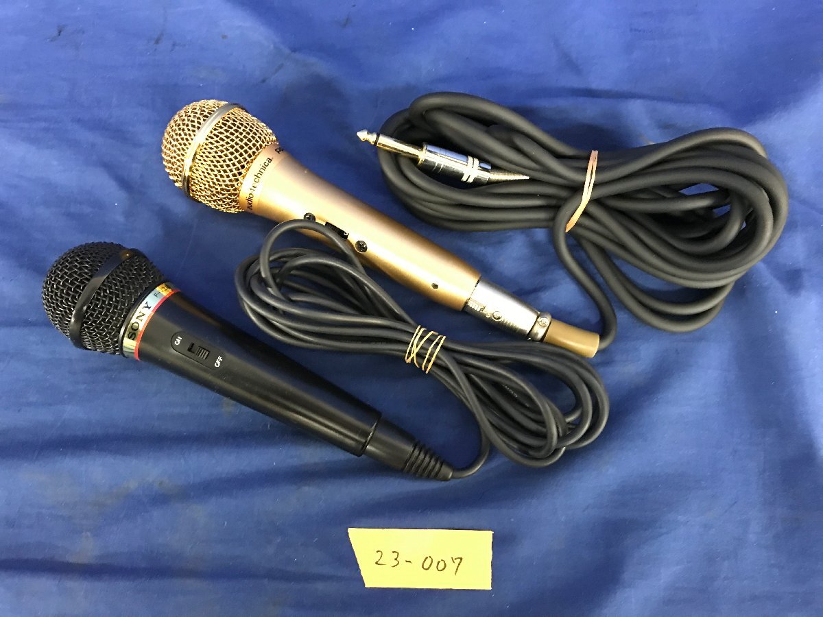 ★23―007★マイク2点セット オーディオテクニカ ダイナミックマイクロホン PRO-100 ゴールド/ソニー F-V310 通電確認済[60]