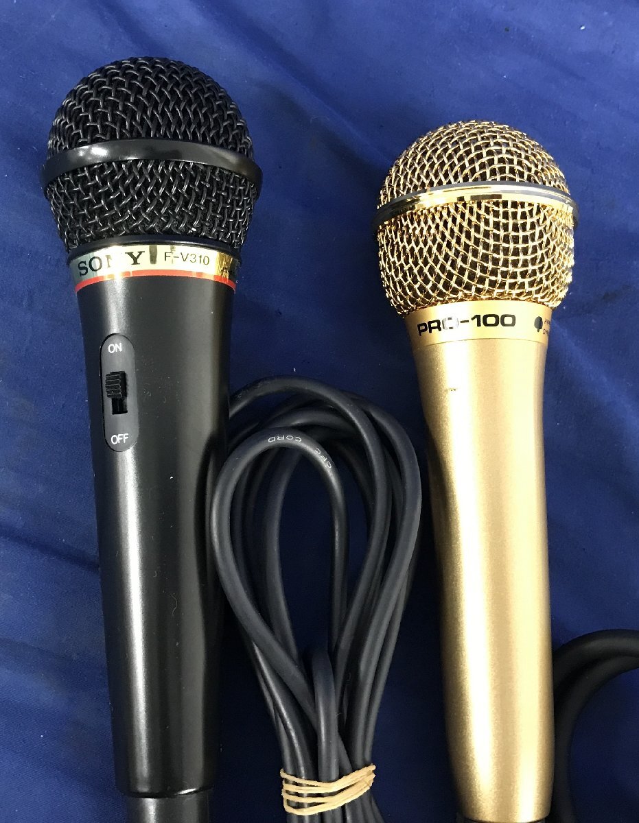 ●★23―007★マイク2点セット オーディオテクニカ ダイナミックマイクロホン PRO-100 ゴールド/ソニー F-V310 通電確認済[60]