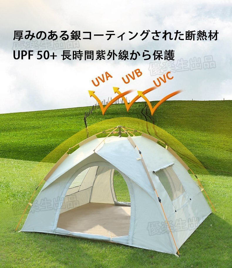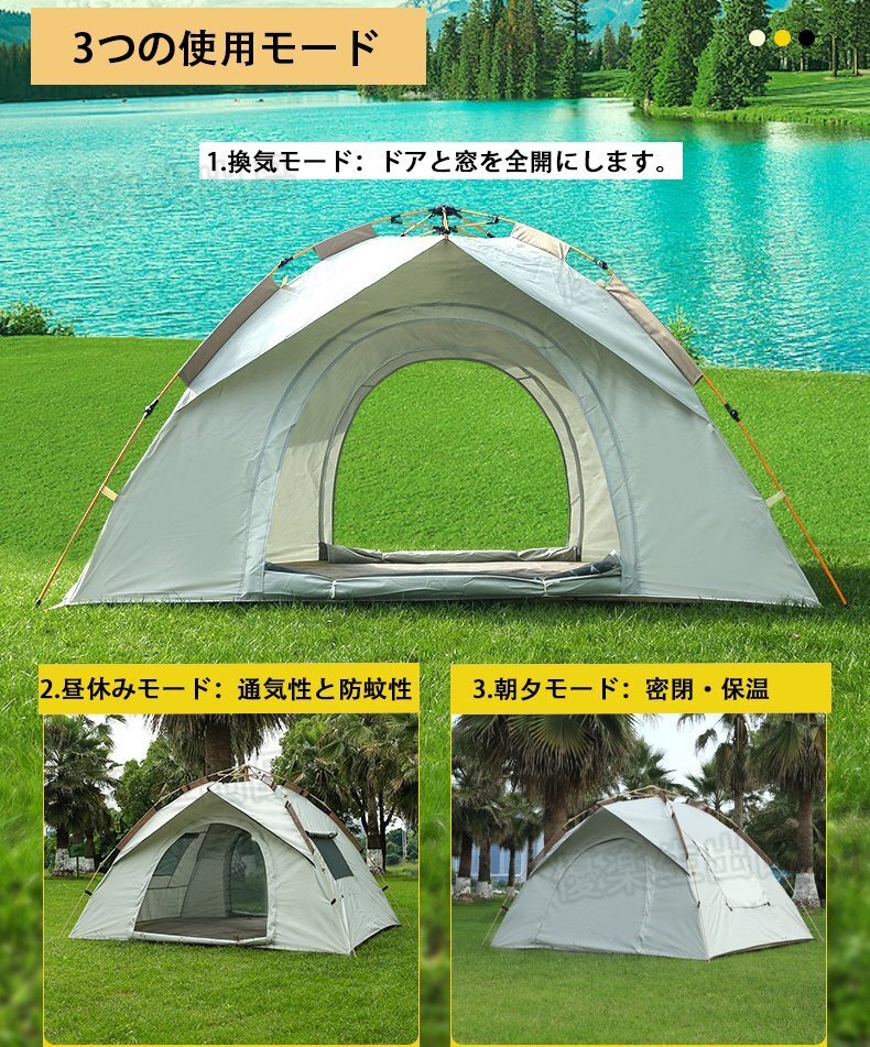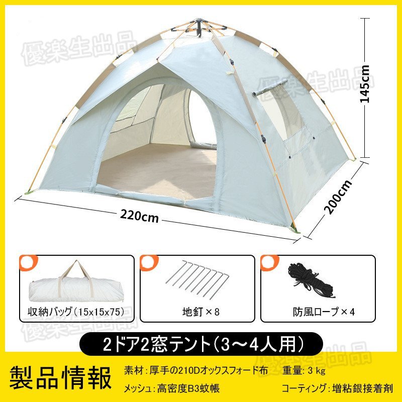 3~4人用テント ポップアップテント 幅220cm 簡単セット 軽量 コンパクト アウトドア キャン yhw006