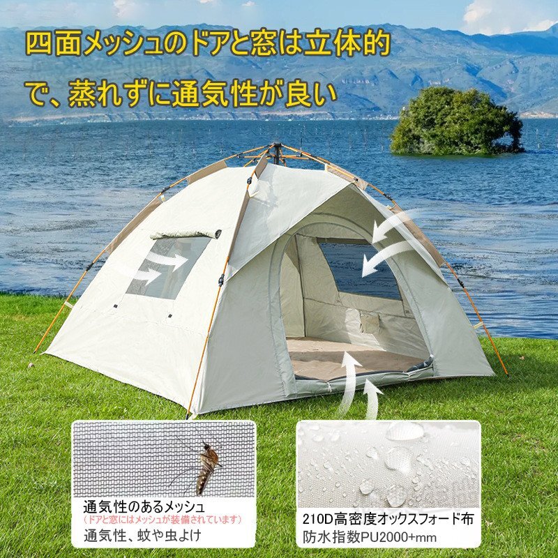 3~4人用テント ポップアップテント 幅220cm 簡単セット 軽量 コンパクト アウトドア キャン