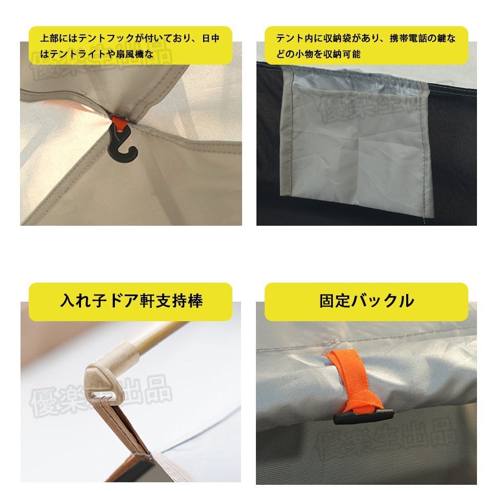 ■テントには2つのドアと2つの窓があり、日焼け止め、冷却、換気、換気を強化するように設計されています。