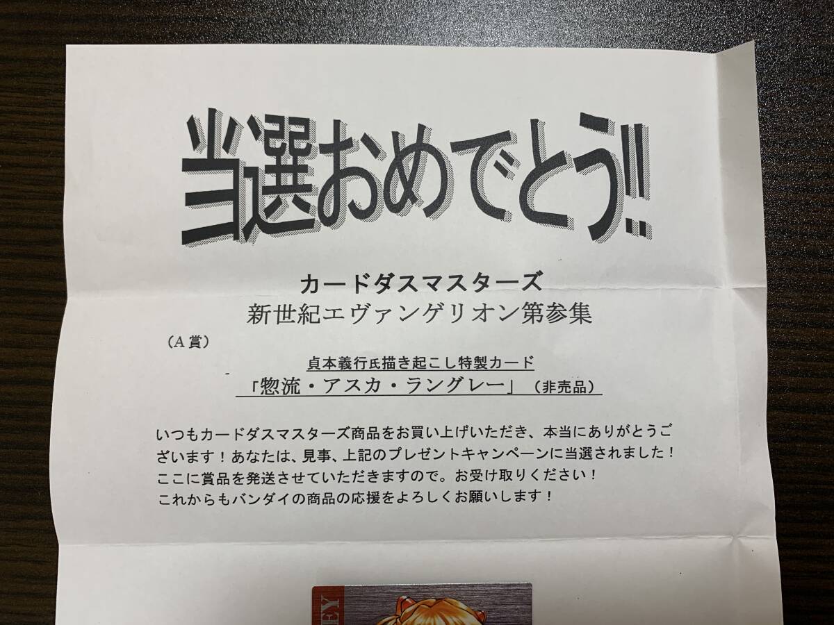 カードダスマスターズ 新世紀エヴァンゲリオン 第参集 当選品非売品カード 惣流・アスカ・ラングレー(A賞)
