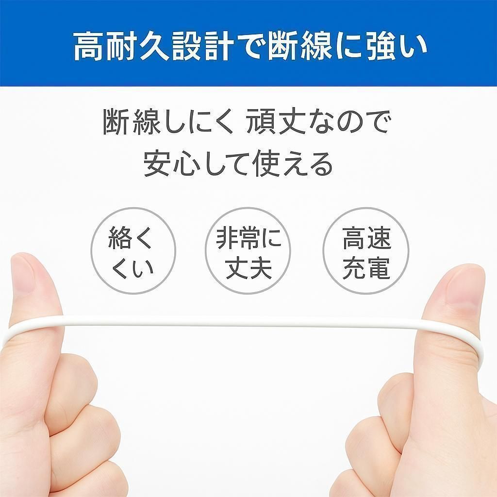 高純度銅線で電気抵抗を抑え、2.4Aの高出力でも安定した急速充電を実現。過充電や発熱も防ぎ、大切な機器をしっかり保護します。