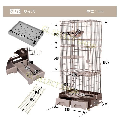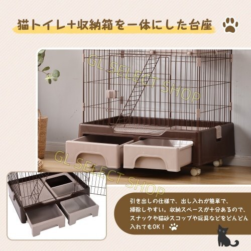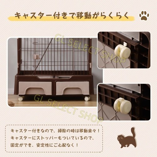 猫 ケージ トイレ付 ハンモック付 収納型 キャットケージ 3段 1段2段可能 キャスター付 キャットハウス 【コーヒー】
