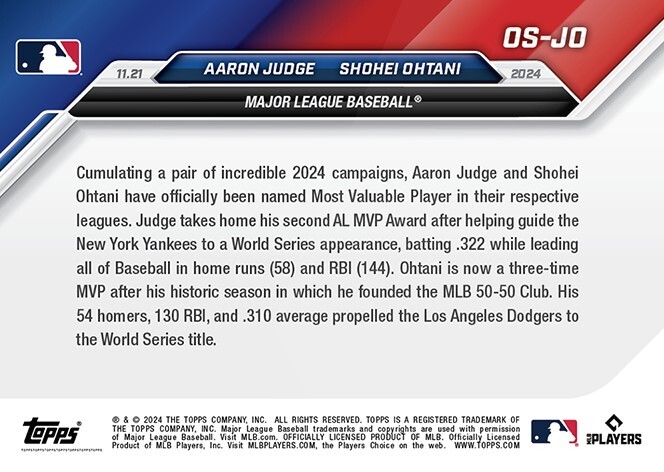 MLBのナショナルリーグ、アメリカンリーグのそれぞれのリーグで 最優秀選手(MVP)に選ばれた事を記念して