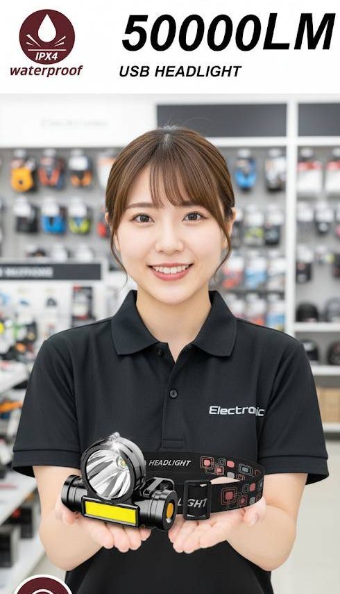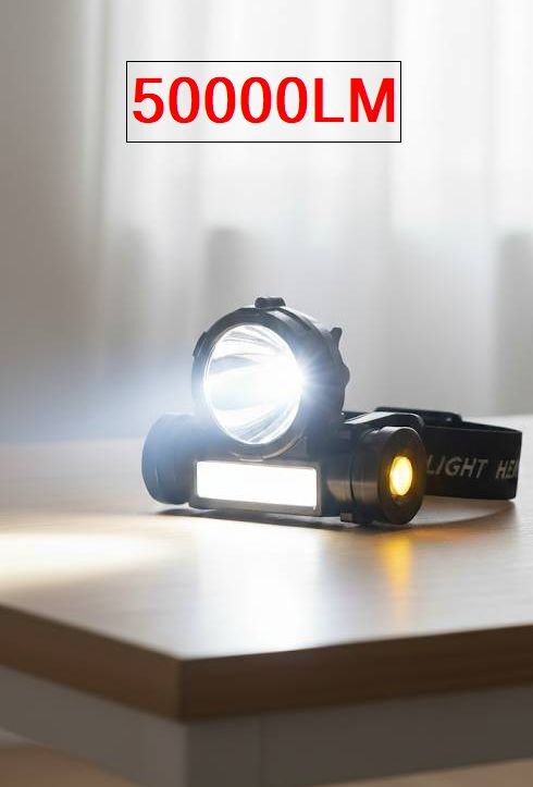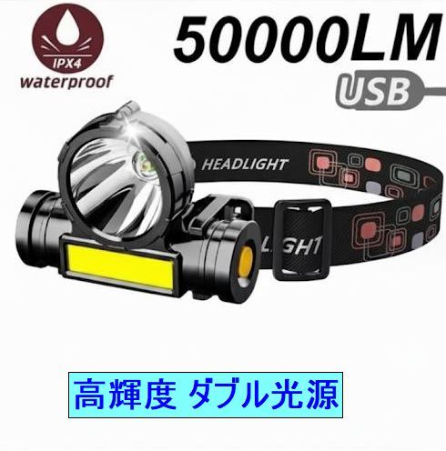 【送料無料!】 50000LM 超爆光 ヘッドライトOSL + COB(遠距離&近距離) 高輝度 ダブル光源 ★USB充電式 IPX4防水 釣り 作業 防災に最適!