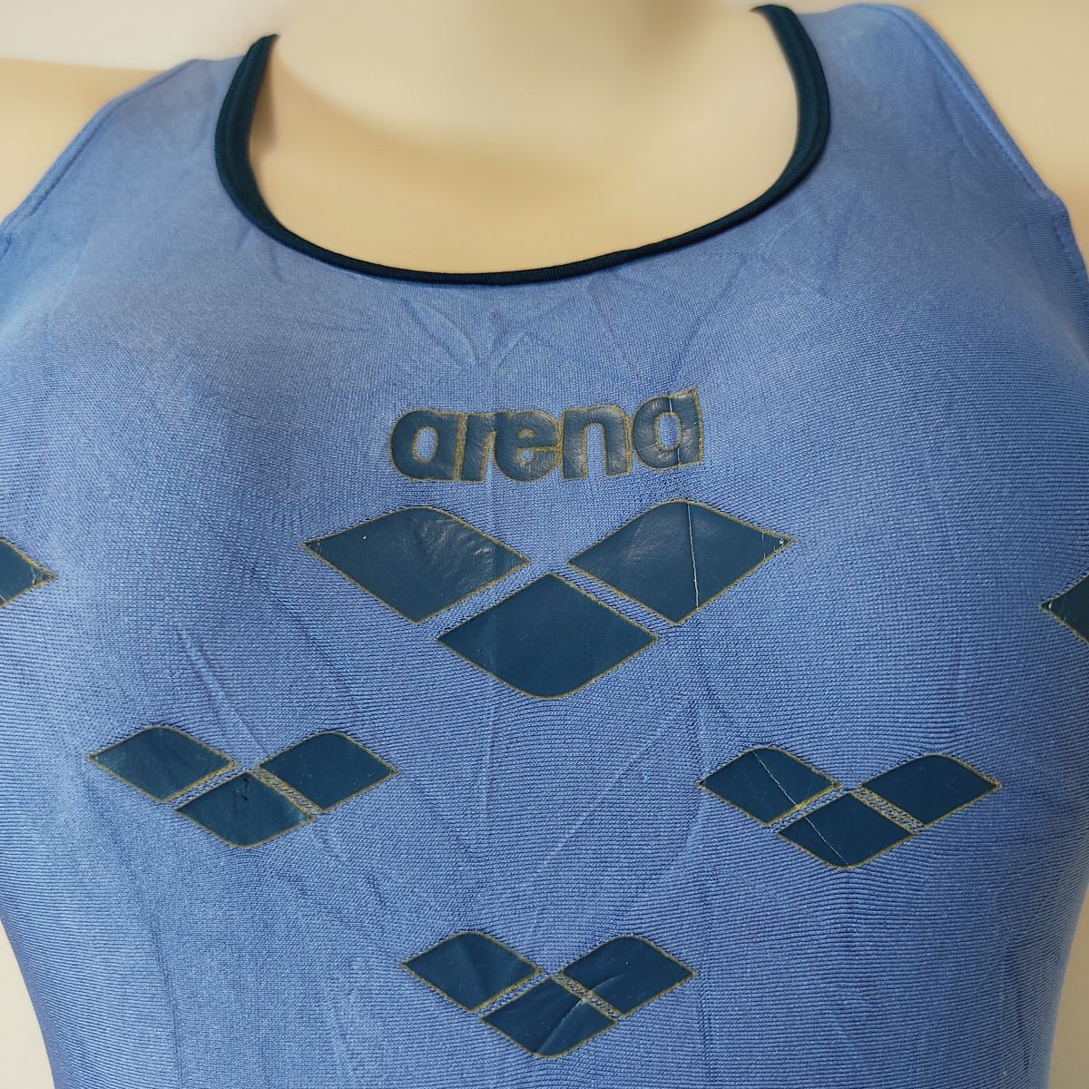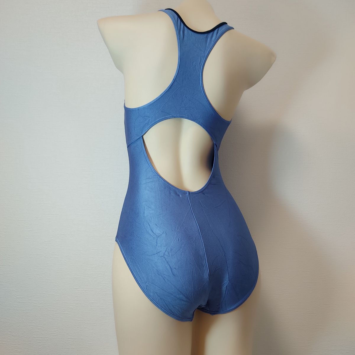 29*アリーナarena女子競泳水着(L程度)★オープンバック光沢ブルー青ネイビー濃紺★伸縮性あり男性も