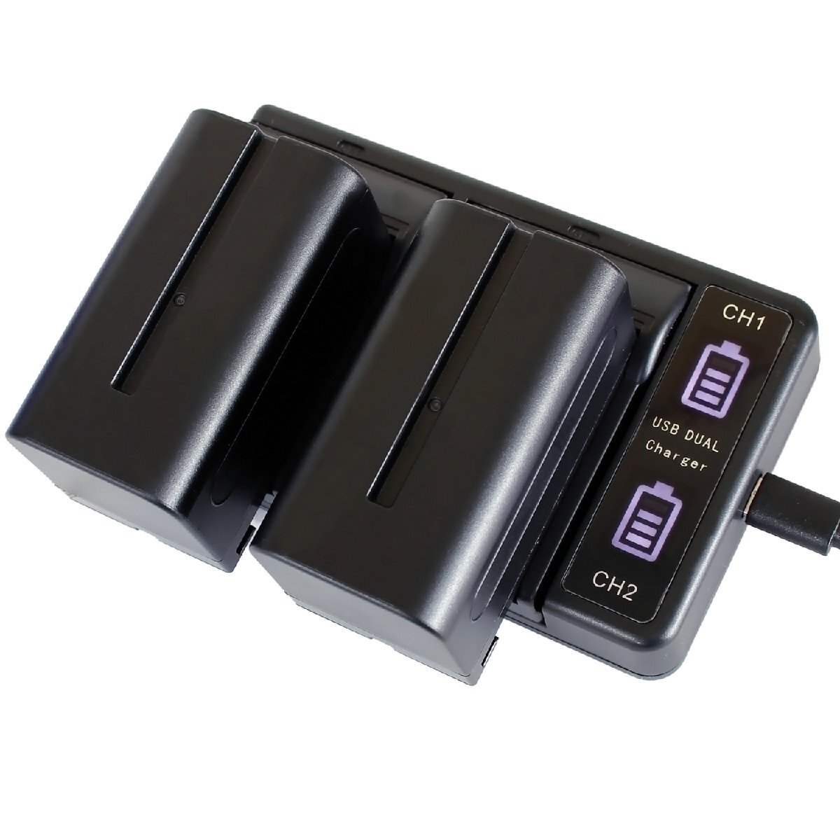 ■ソニーのNP-F550、NP-F570/5などにも互換するバッテリーパック2個と充電器のセットです。