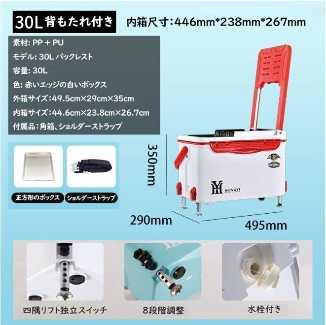 新品です 多機能クーラーボックス 釣り用 30L 保温保冷 釣り 防水 高さ8段調整可 ハンドル/釣りエサ箱/背もたれ/水栓付き xhw0036