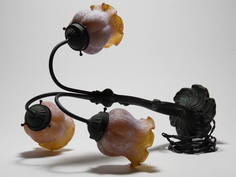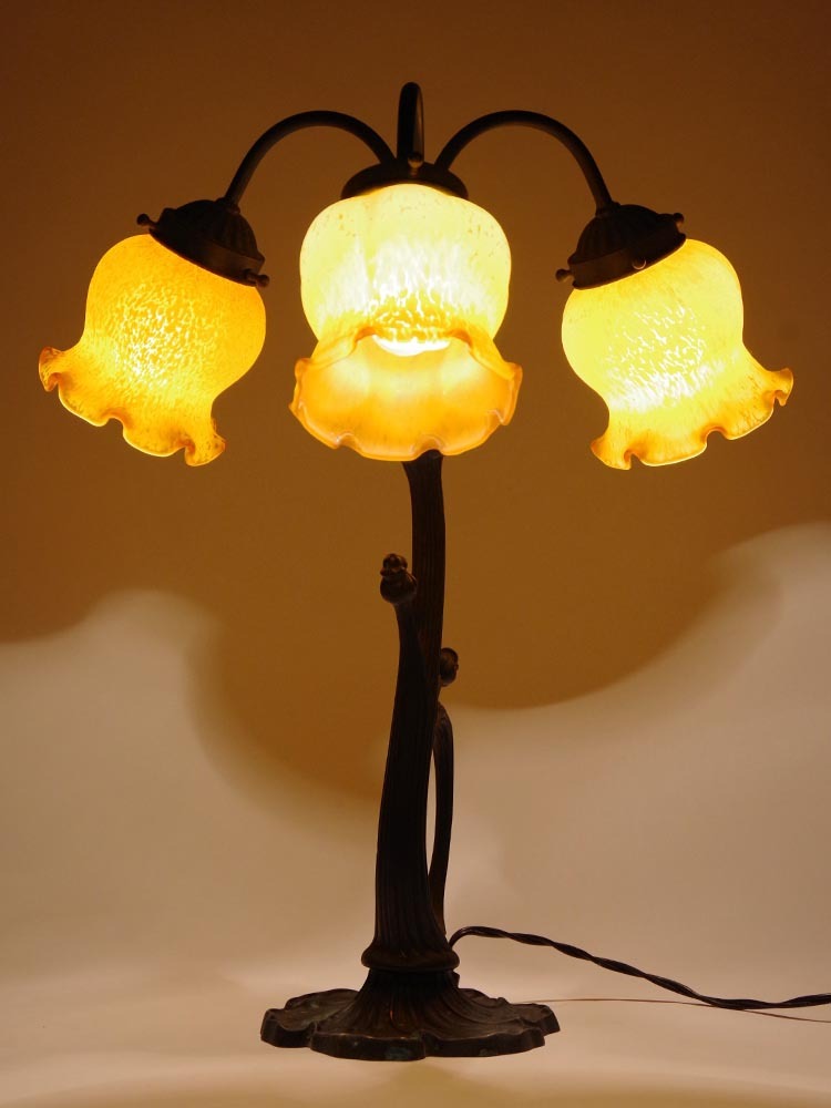 商品名:西洋リリーフラワーデザインランプブロンズテーブルランプナイトスタンド卓上ランプ照明器具個人蔵旧家整理品