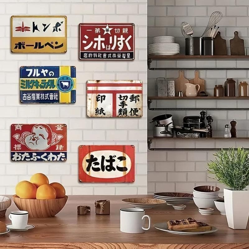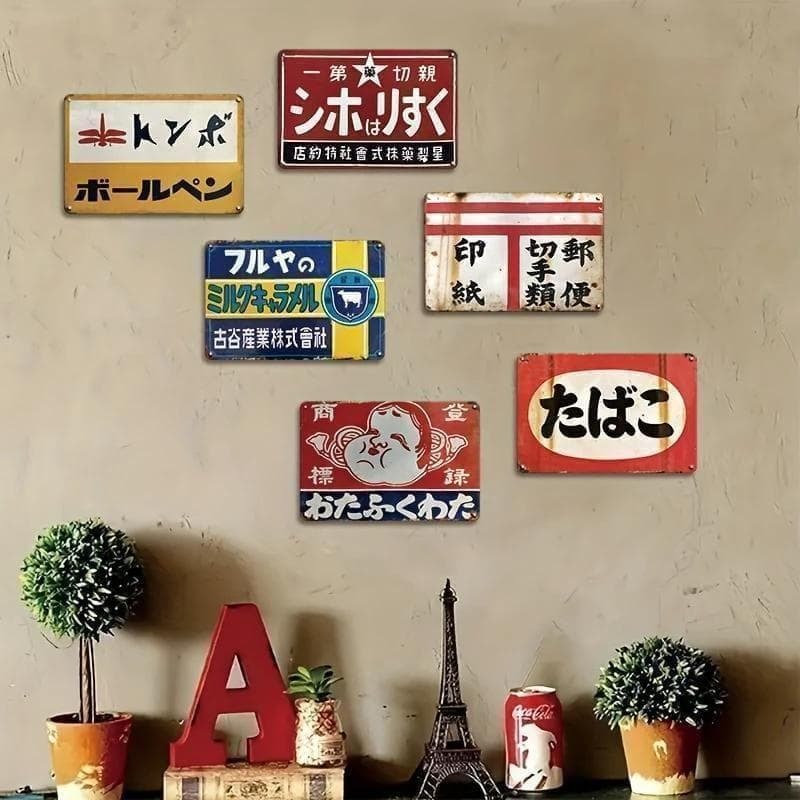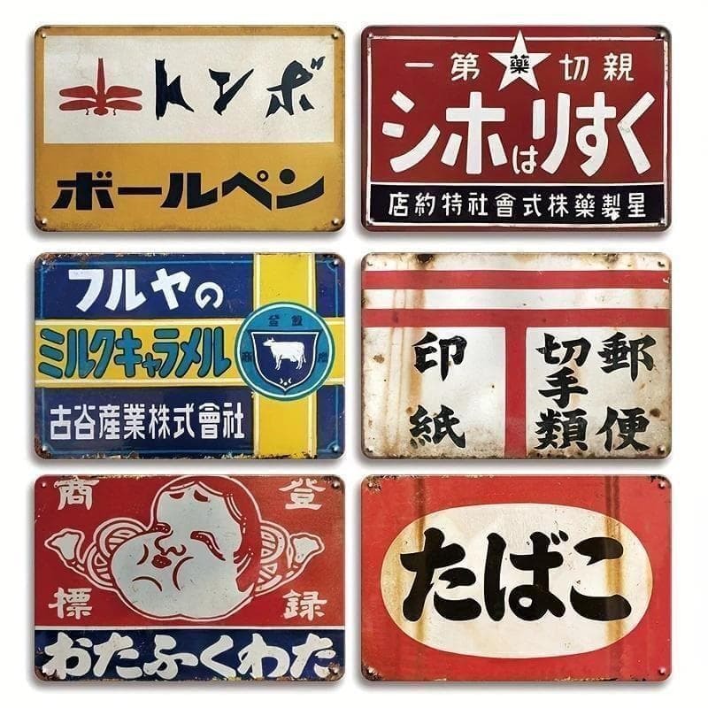 New最安値・6枚セットでお買い得・なつかしい昭和のレトロ、ブリキ看板レプリカ