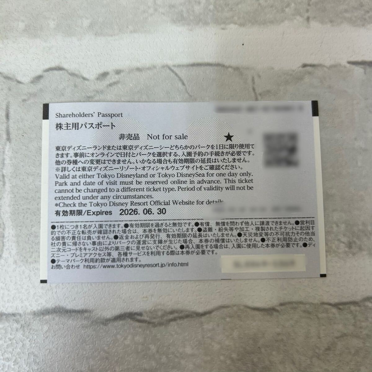 【東京ディズニーリゾート 株主優待 パスポート 1枚】