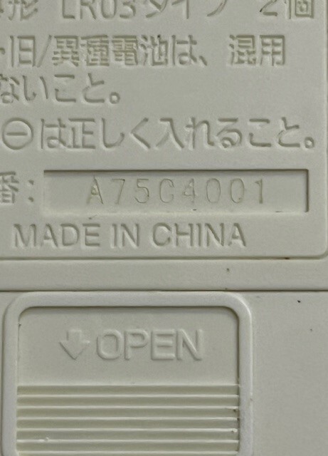 Panasonic パナソニック エアコン用リモコン A75C4001 中古 動作品