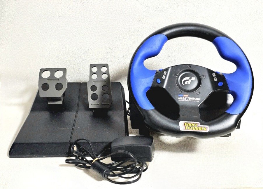 商品説明 ステアリングとペダルコントローラーの2点セットです。 PlayStation2に対応しており、スポーク仕様のステアリングになっています。 詳細 ●サイズ:ステアリング-奥行30cm、幅25cm、高さ25cm ペダル-奥行25.5cm、幅25.5cm、高さ14cm ●付属品:ACアダプター ●ランク:Cランク ●コンディション:ハンドル・ペダル両コントローラーに傷、汚れがあります。 |
