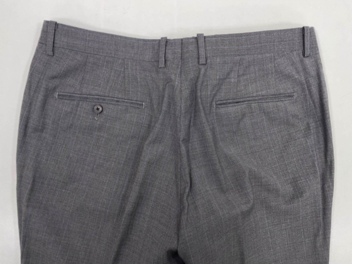 ・着用感、スレ、多少のテカリ、所々に多少の毛羽立ち、スラックスウエスト内側に後付けのシャツ留めが付いています。それ以外の状態は良いです。