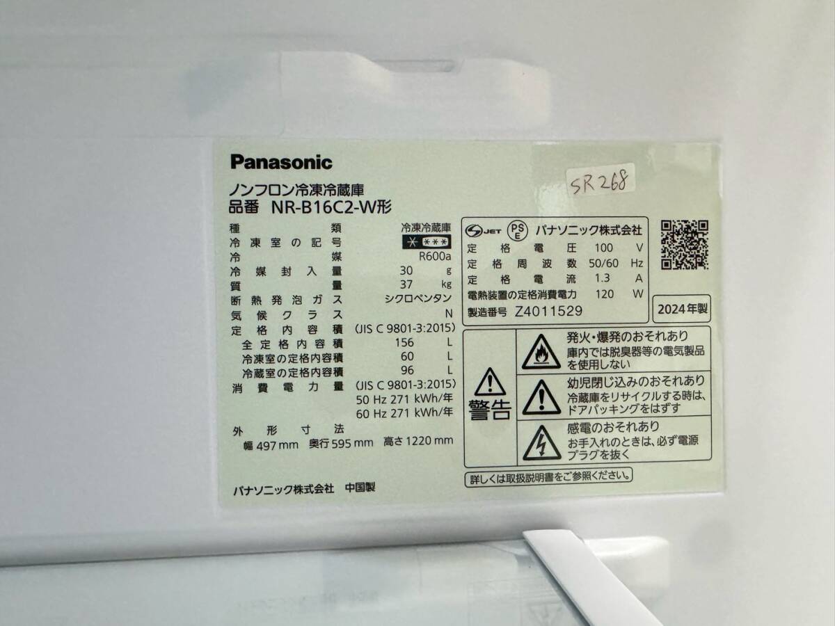 【高年式】大阪送料無料★3か月保障付き★冷蔵庫★パナソニック★2ドア★2024年★NR-B16C2-W★SR-268