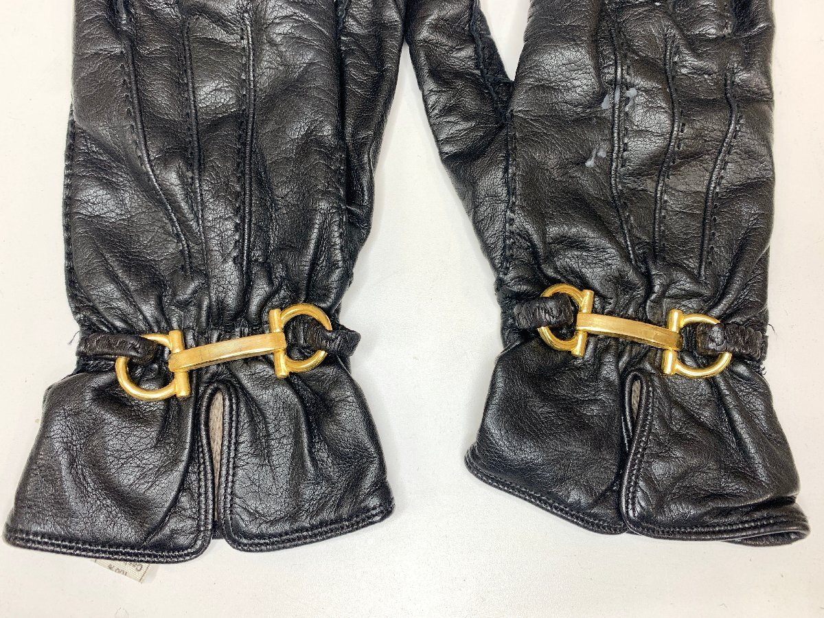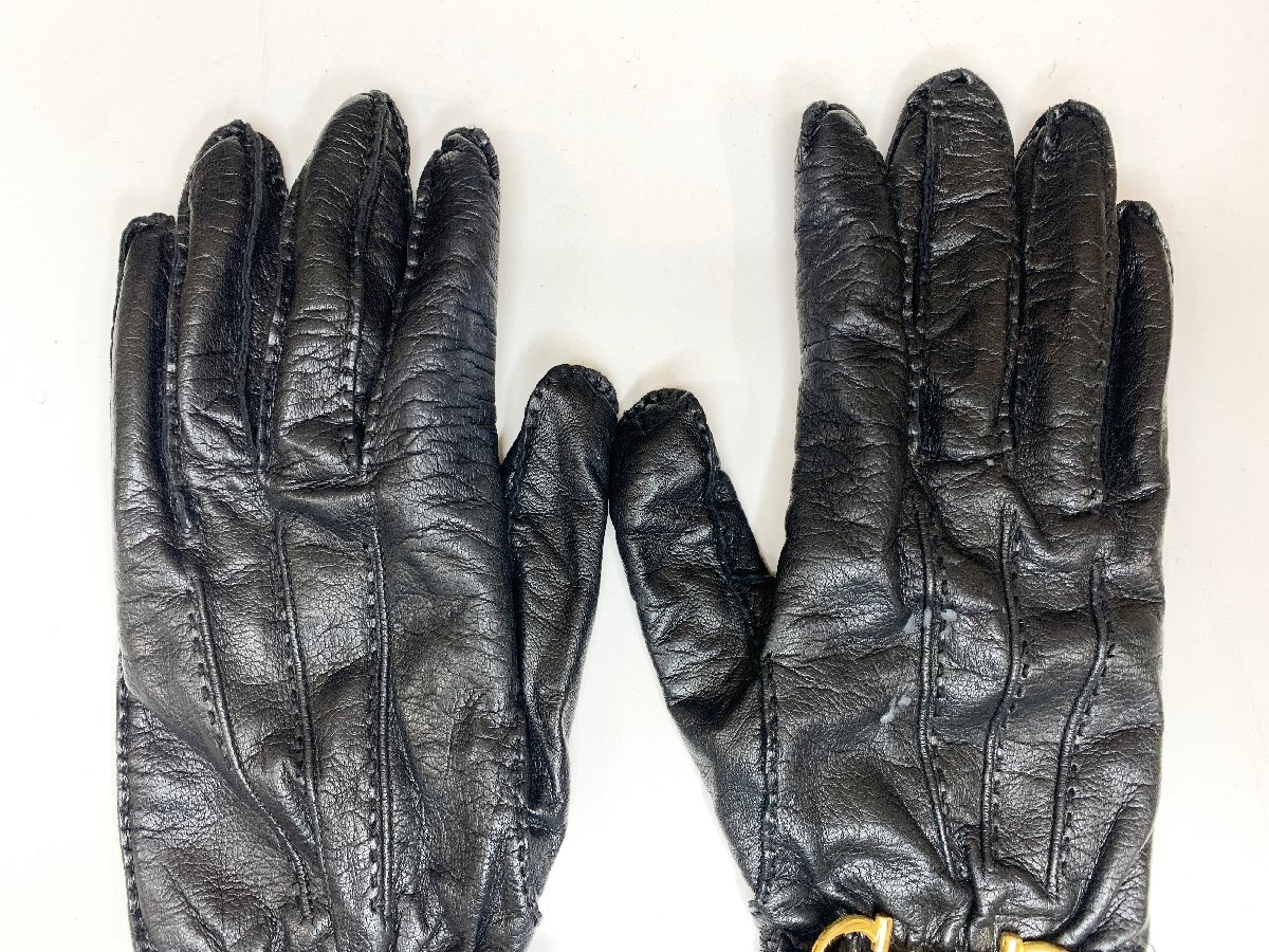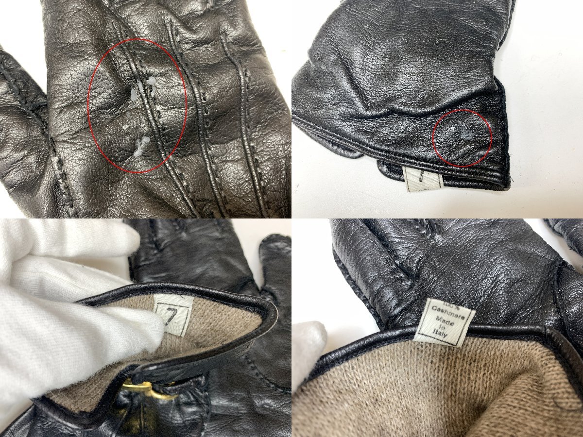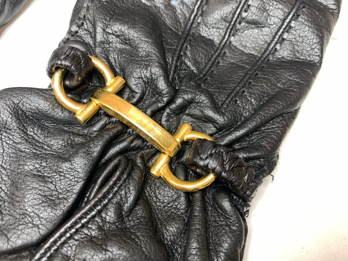 ◆イタリア製 レザー 手袋 カシミヤ100% 裏地 レディース 7 ブラック 馬具モチーフ金具付き 服飾小物
