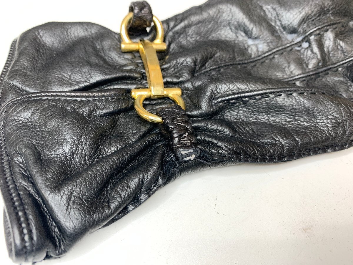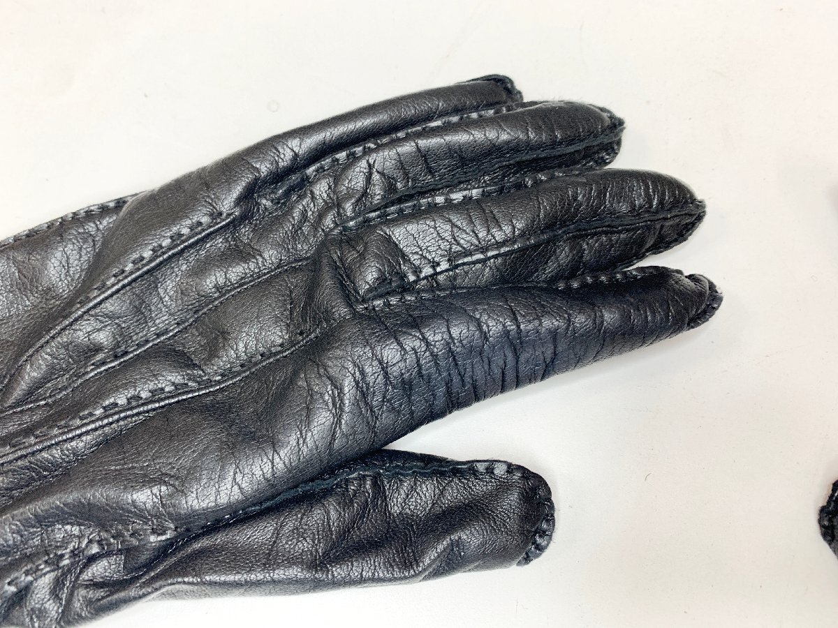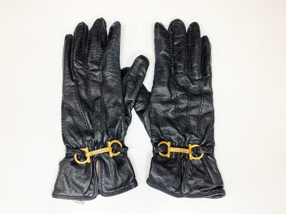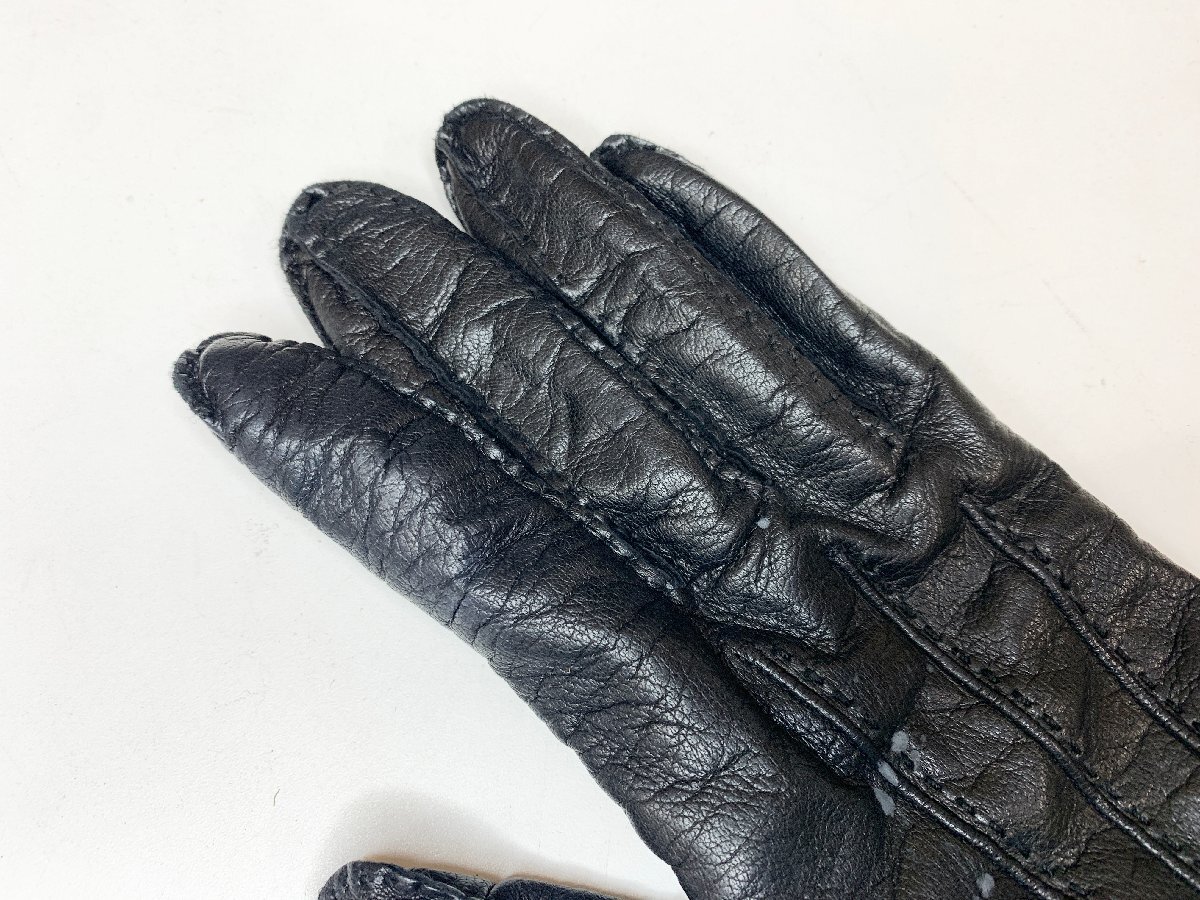 ◆イタリア製 レザー 手袋 カシミヤ100% 裏地 レディース 7 ブラック 馬具モチーフ金具付き 服飾小物
